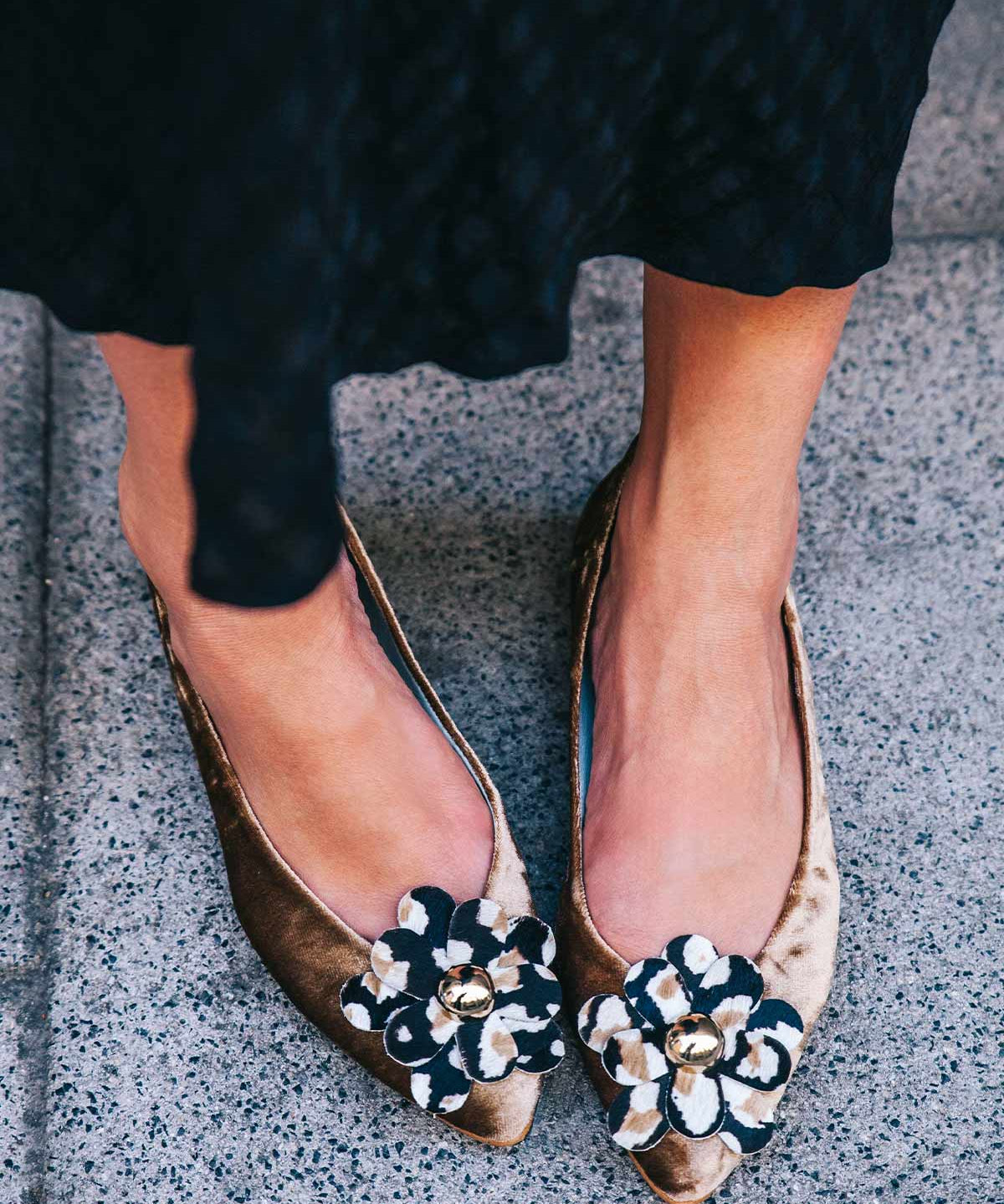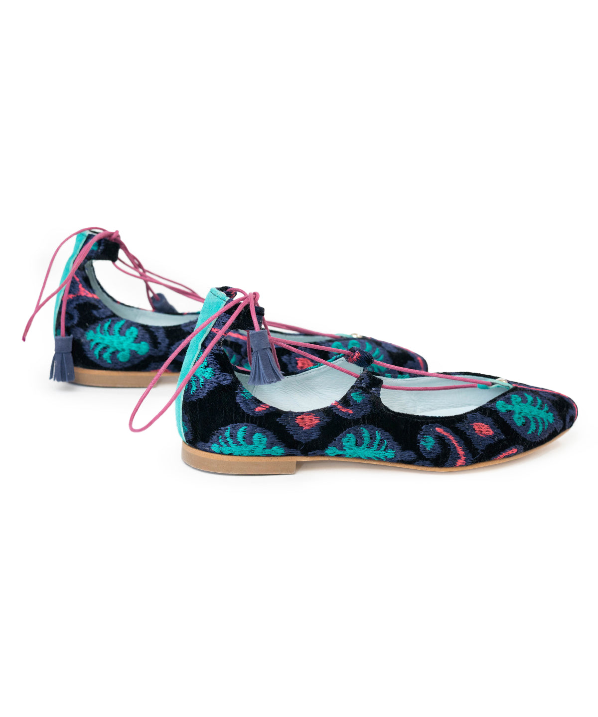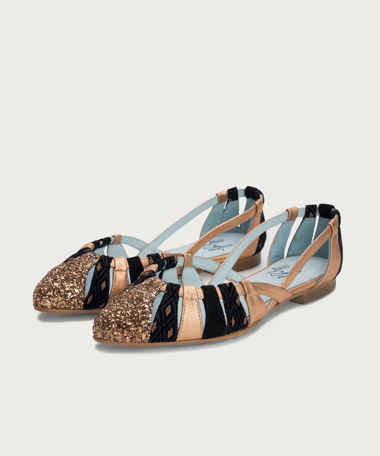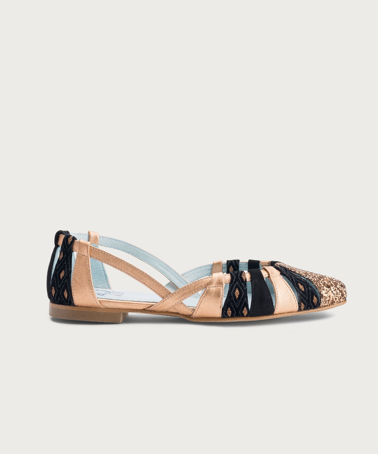 Una auténtico espectáculo. El terciopelo negro y el ribete en dorado hacen que esta bailarina sea muy elegante pero con el toque de Defloresyfloreros.