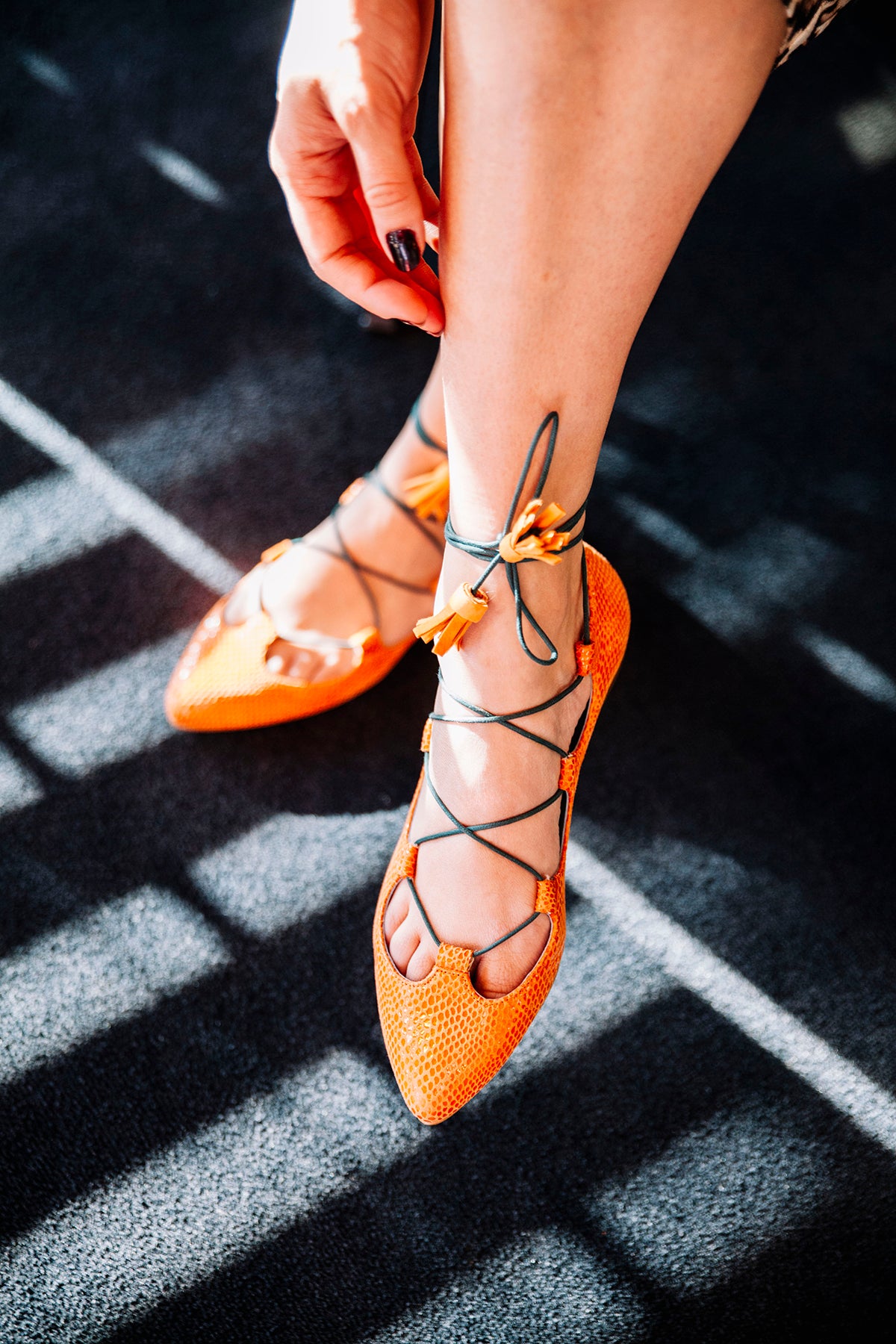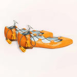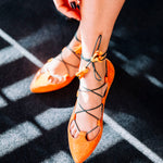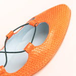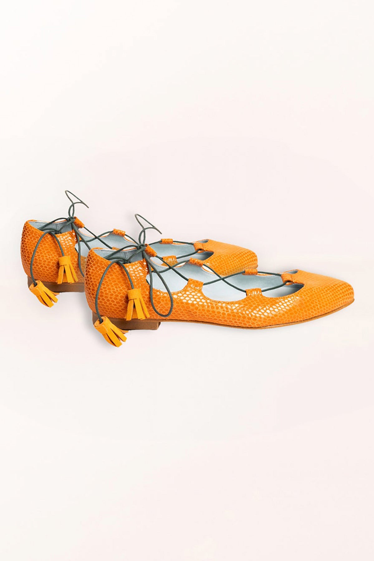 Bailarina con base de napa naranja. Diseñados y producidos de forma artesanal 100% en España. Están elaborados con materias primas de alta calidad, seleccionadas al detalle.