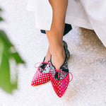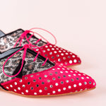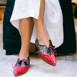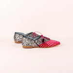 Zapatos tipo blucher en combinación terciopelo de seda en tono fucsia y animal print en glitter. Diseñados y producidos de forma artesanal 100% en España. Están elaborados con materias primas de alta calidad, seleccionadas al detalle.