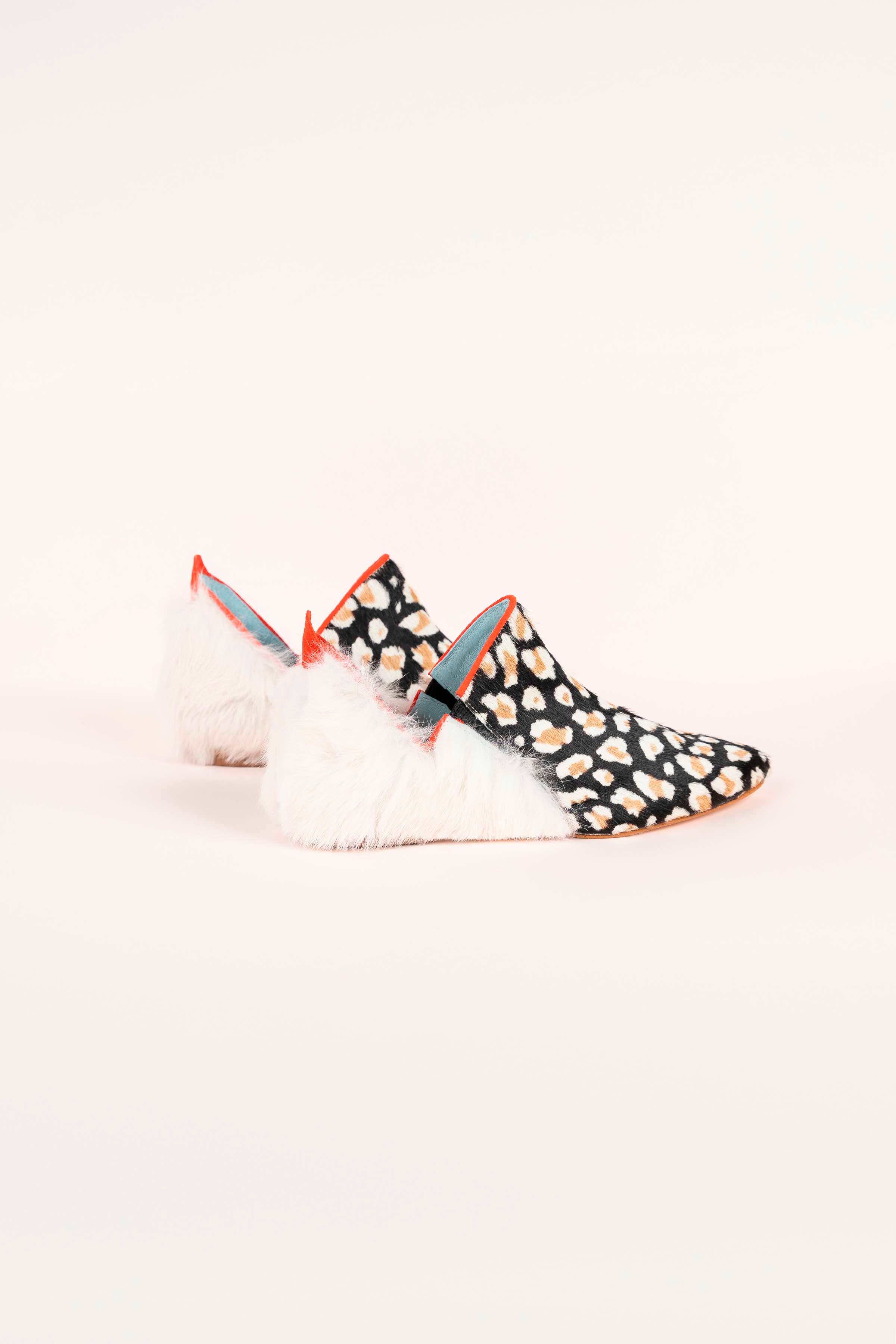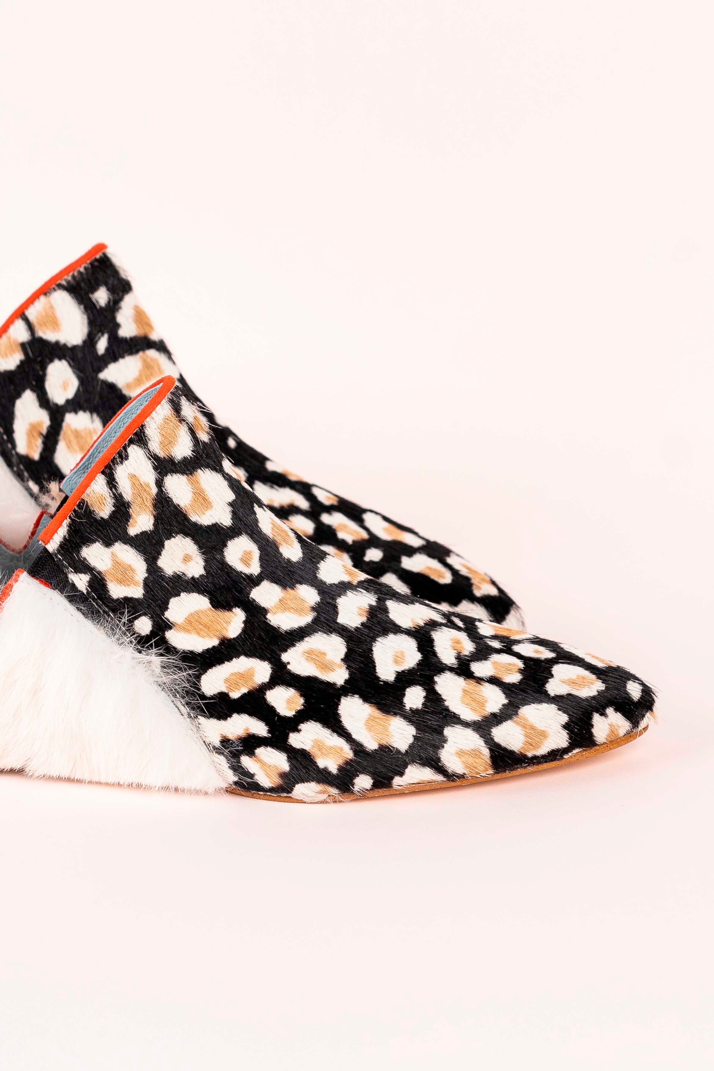 Botín combinado en pelo largo de conejo y animal print. • PLANTILLA INTERCAMBIABLE • Made in Spain. Todos nuestros modelos poseen una cuña interna de 1,5cm. Interior 100% piel. Suela de cuero. Modelo exclusivo de defloresyfloreros, diseñado y fabricado en España.