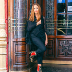 Una auténtico espectáculo. El terciopelo negro y el ribete en dorado hacen que esta bailarina sea muy elegante pero con el toque de Defloresyfloreros.
