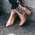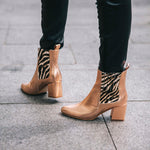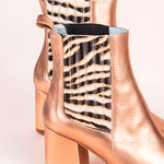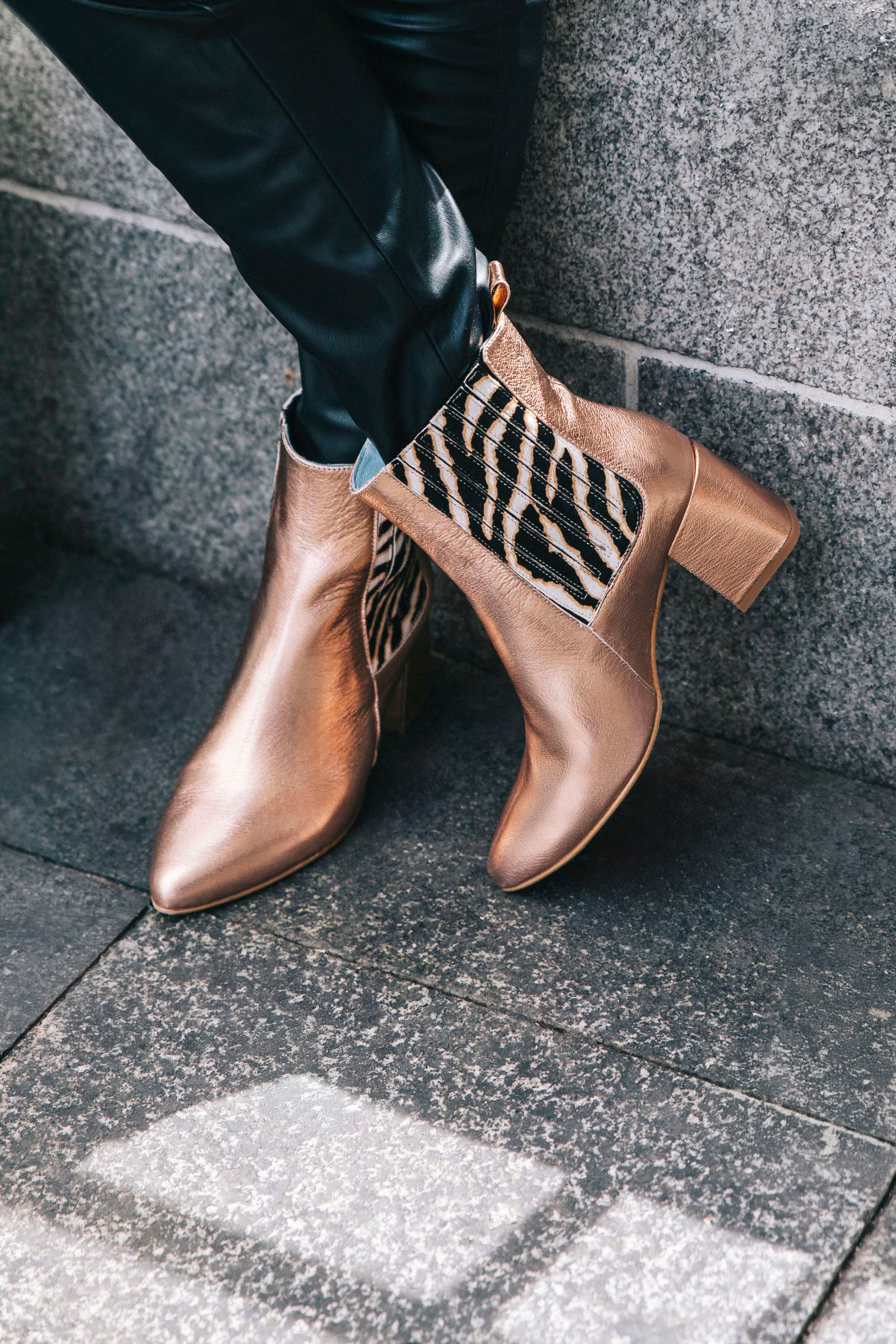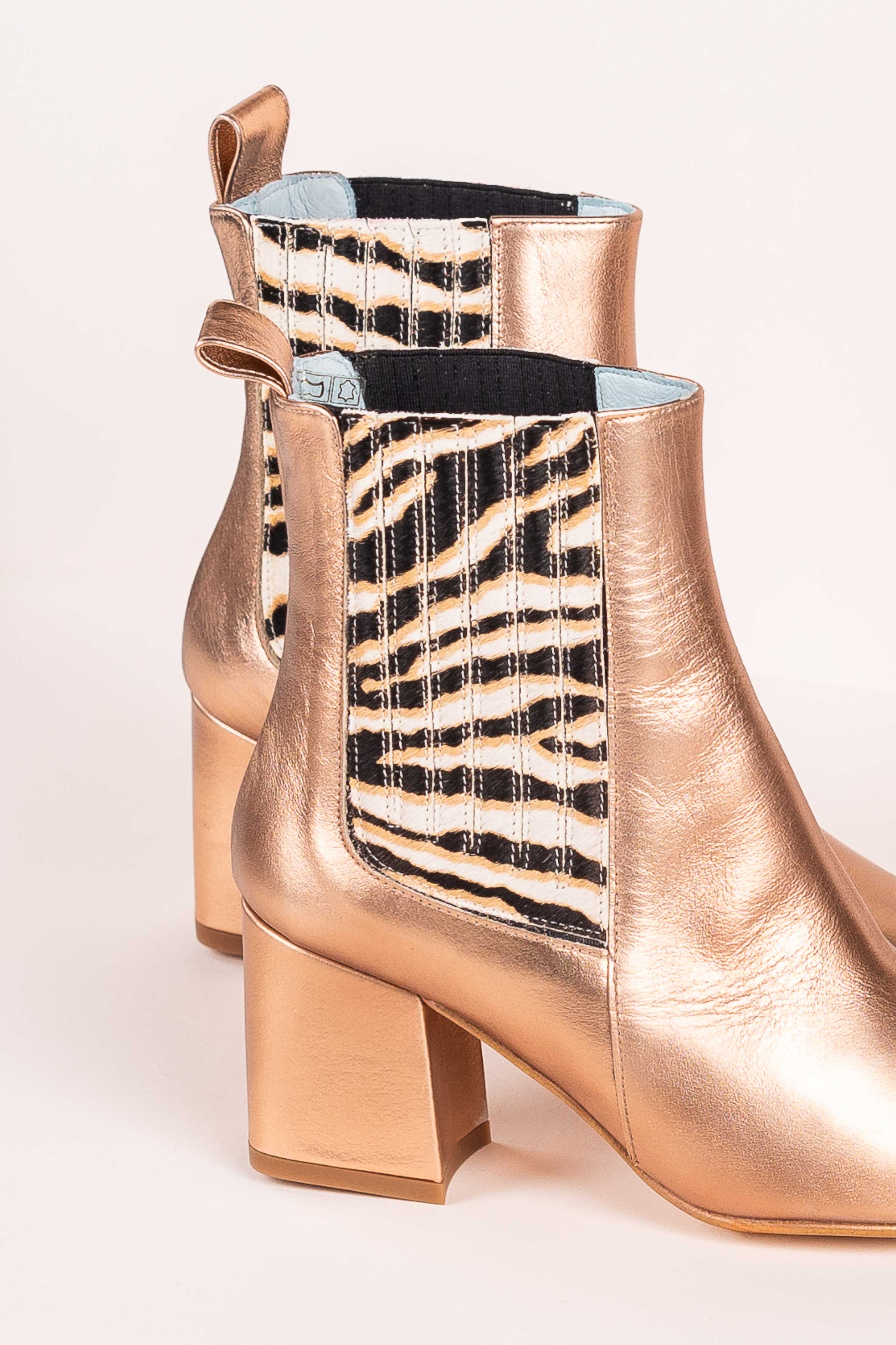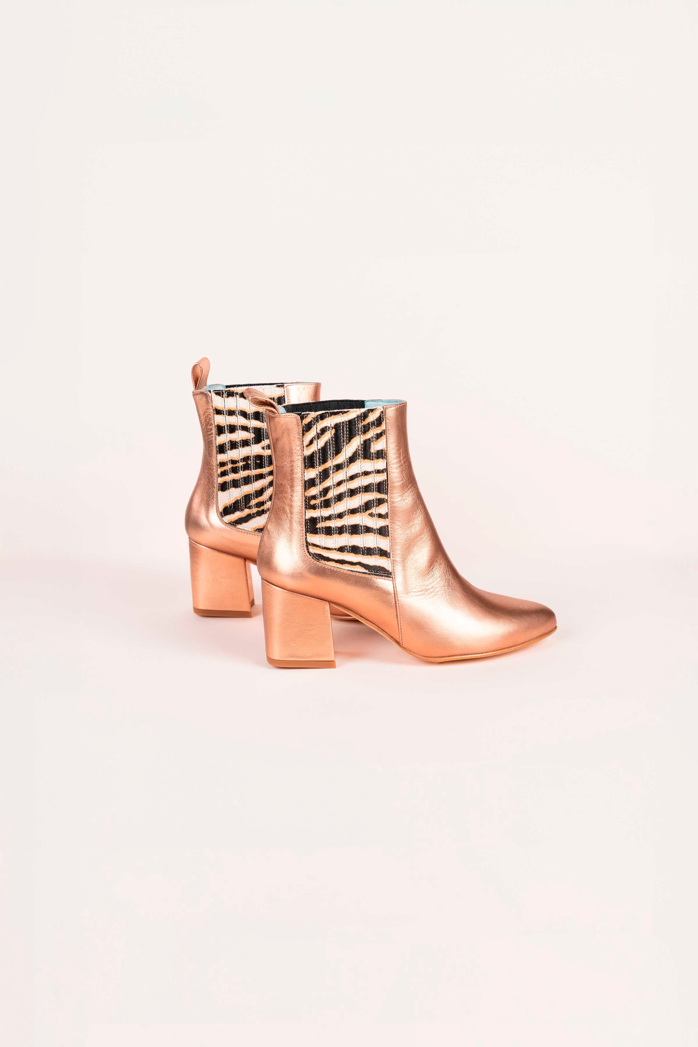 Botines con goma lateral y tacón, diseñados y producidos de forma artesanal 100% en España. Altura de 5,5cm. Están elaborados con materias primas de alta calidad, seleccionadas al detalle.