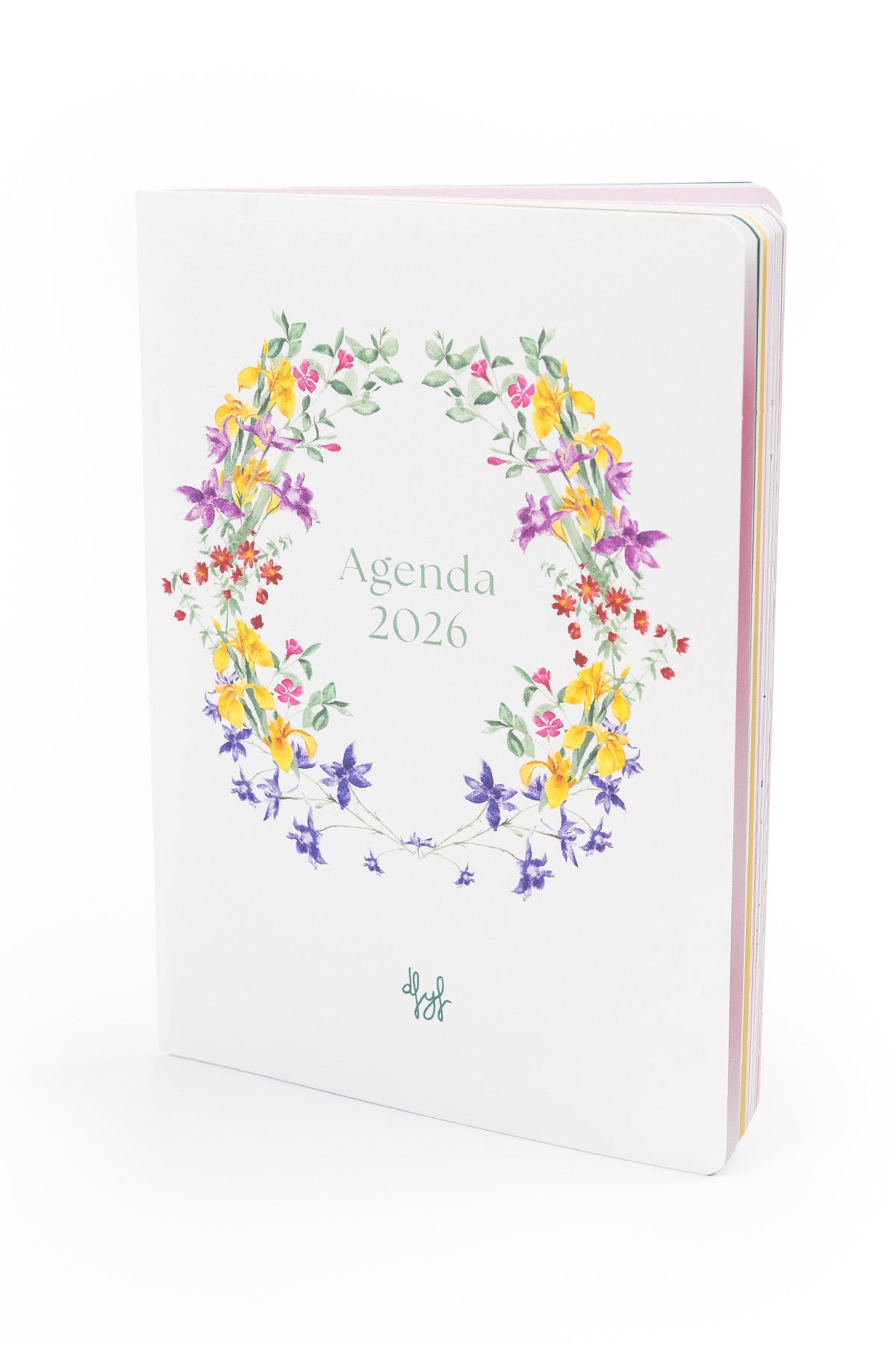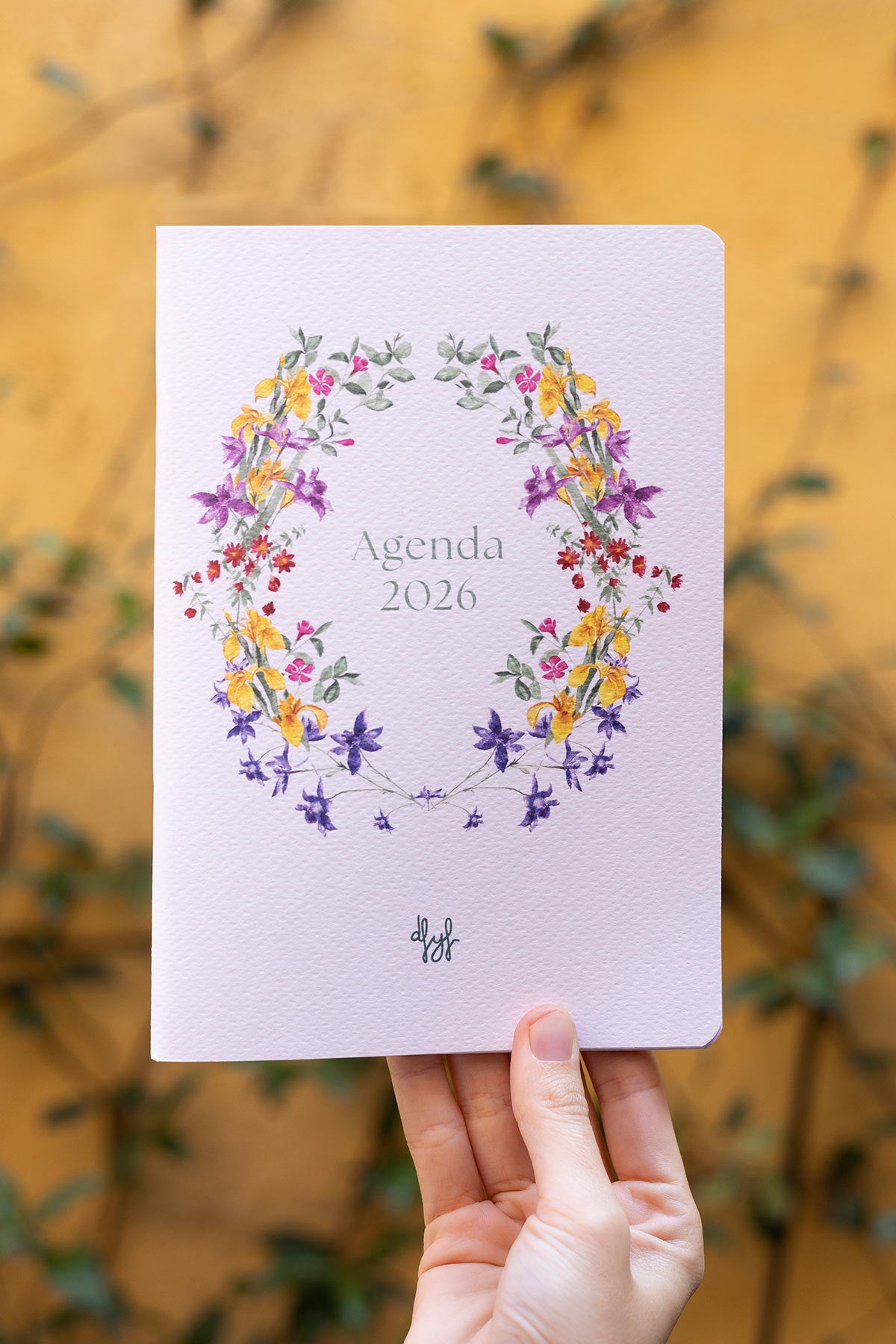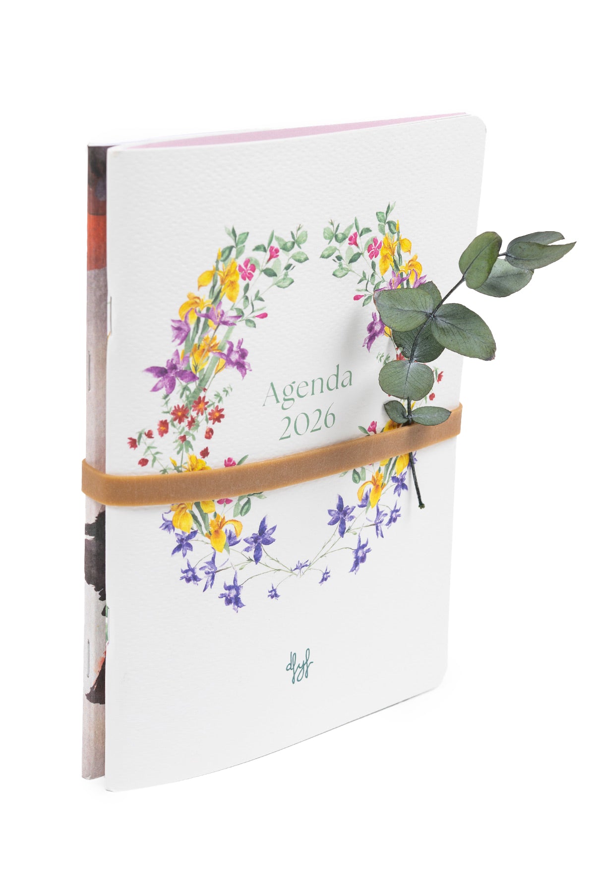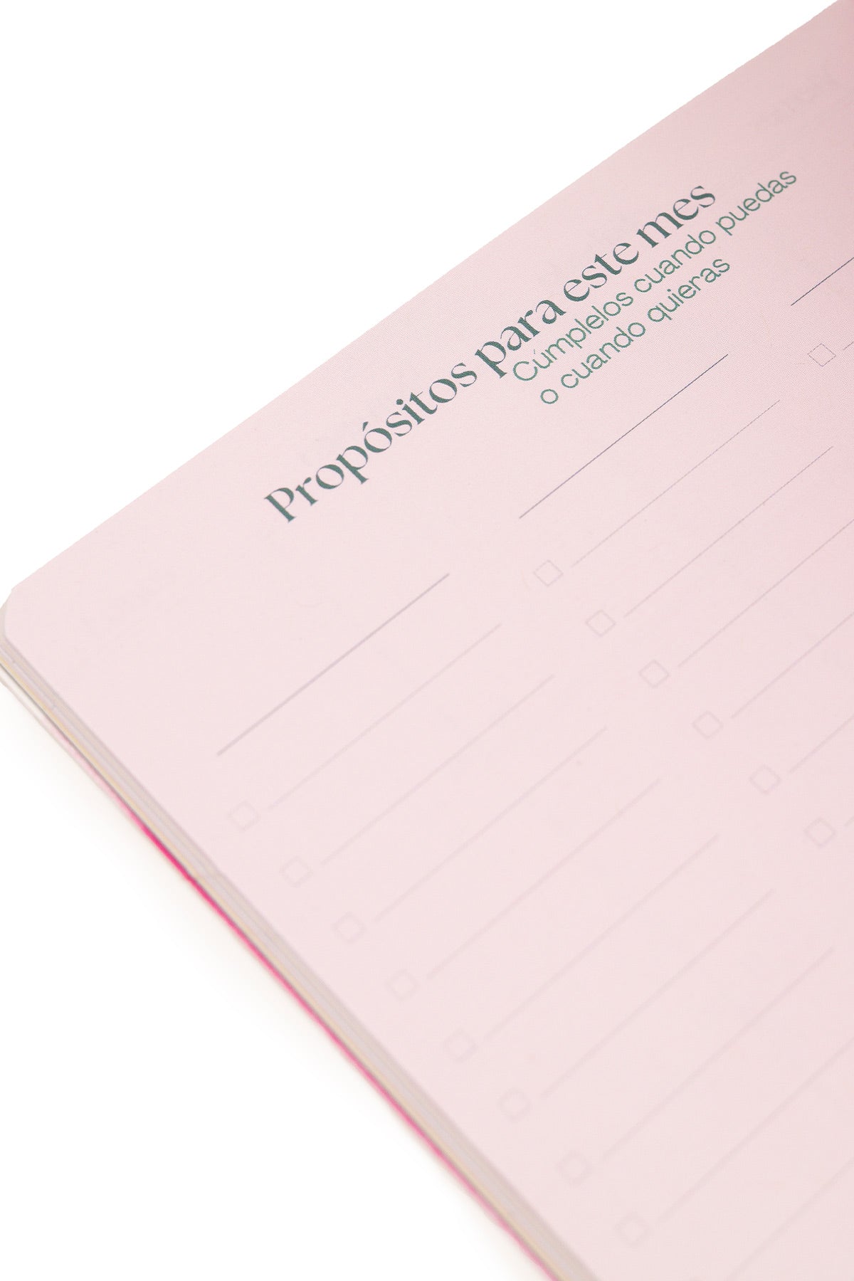 Un diseño exclusivo impreso en papel offset blanco de 90 gr. y cubiertas de papel verjurado de 160gr, con doble grapa. Nuestra agenda es formato planner y presenta un diseño diferenciador al comienzo de cada mes. Viene acompañada de un cuaderno con hojas blancas del mismo gramaje, con nuestro característico print gris, en acuarela. Ambas piezas vienen unidas por una goma ancha de papelería.