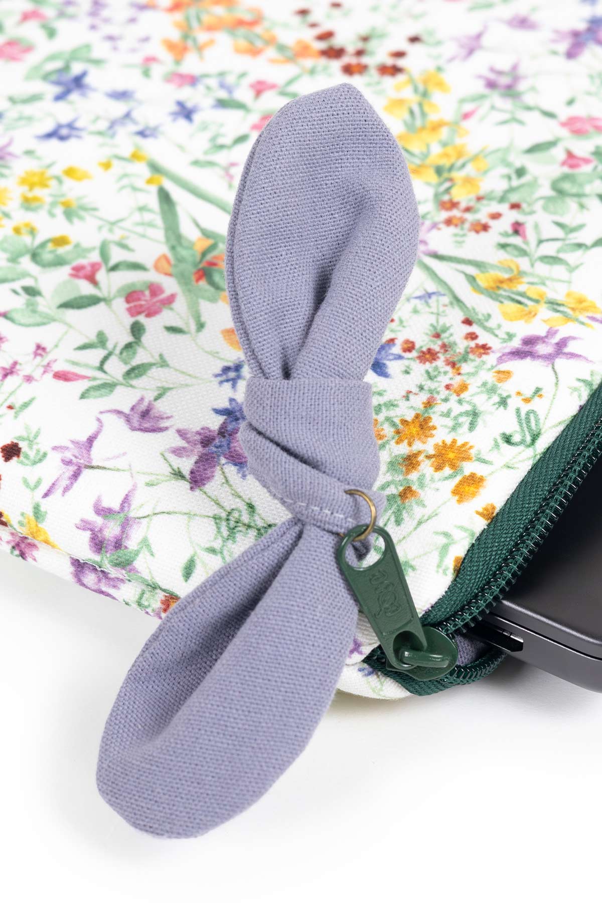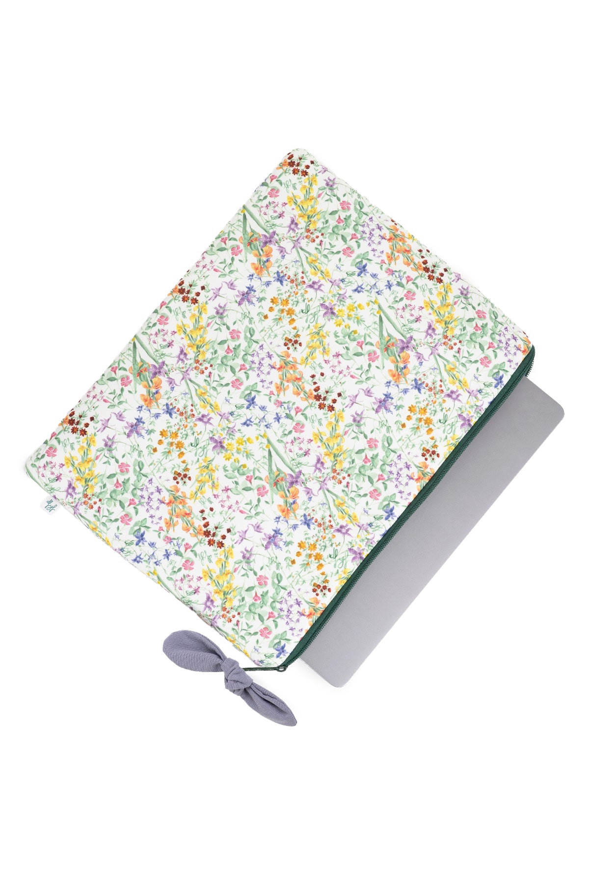 Funda de algodón con el característico estampado dfyf, para portátil de hasta 15''. Presenta un interior acolchado en algodón, cremallera en verde bosque y detalle de lazo en el cierre. Un nuevo accesorio esencial.