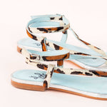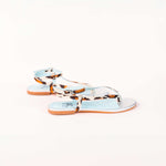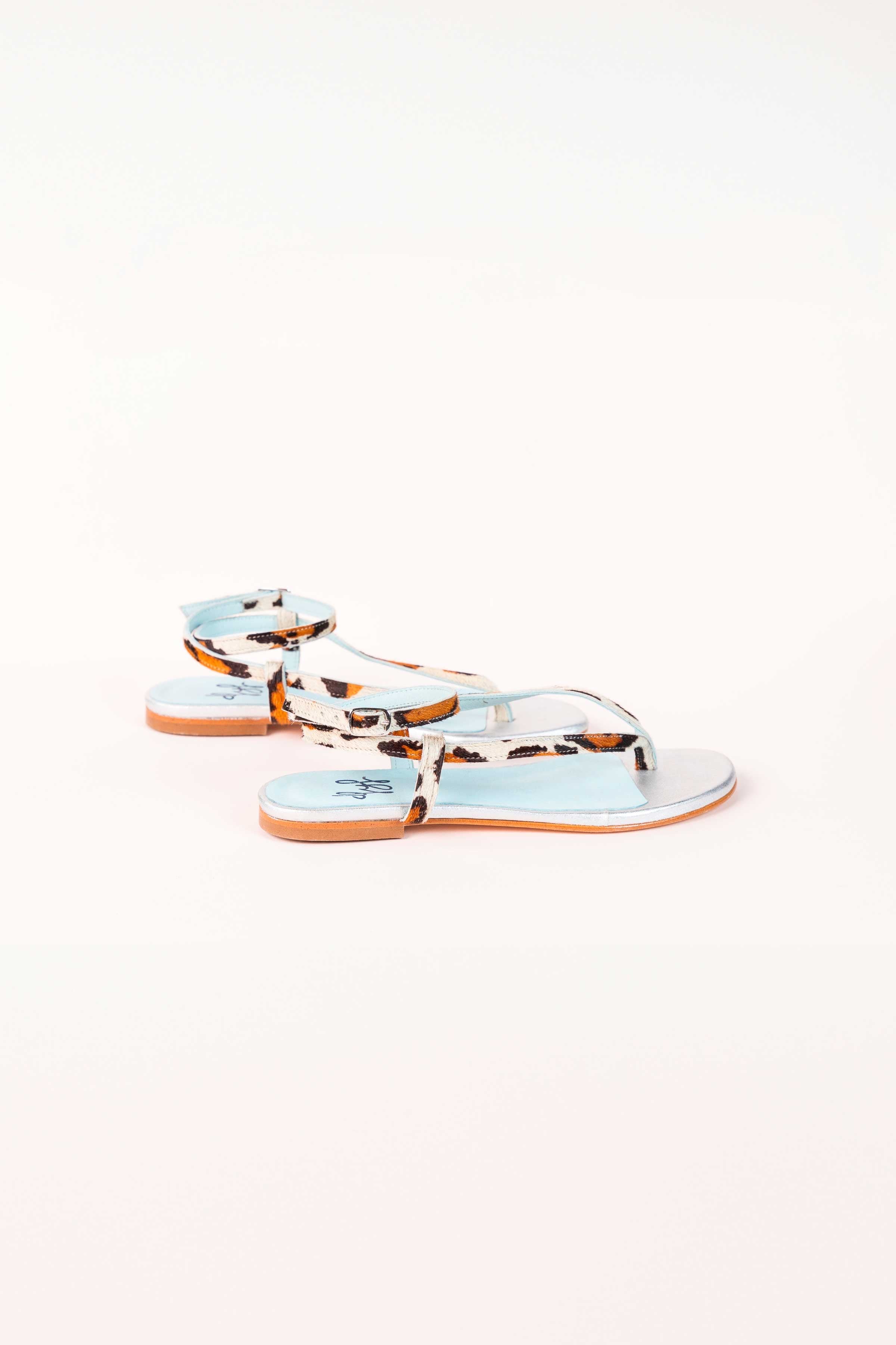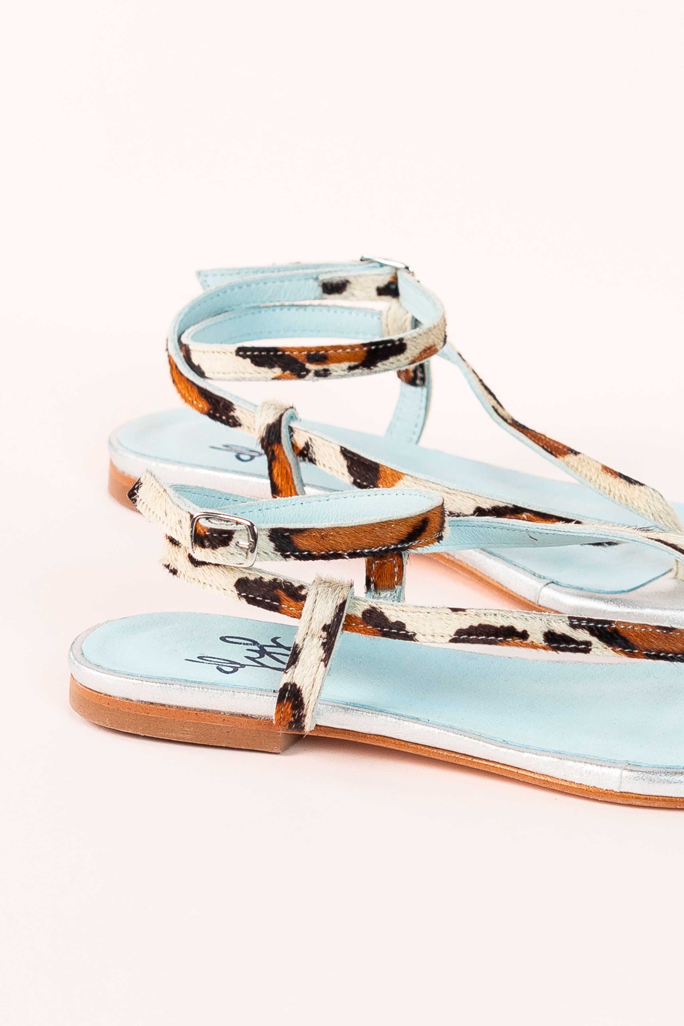 Cangrejera de cuerdas en print, Planta forrada en piel, Interior de piel celeste.