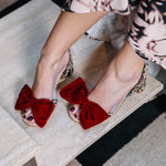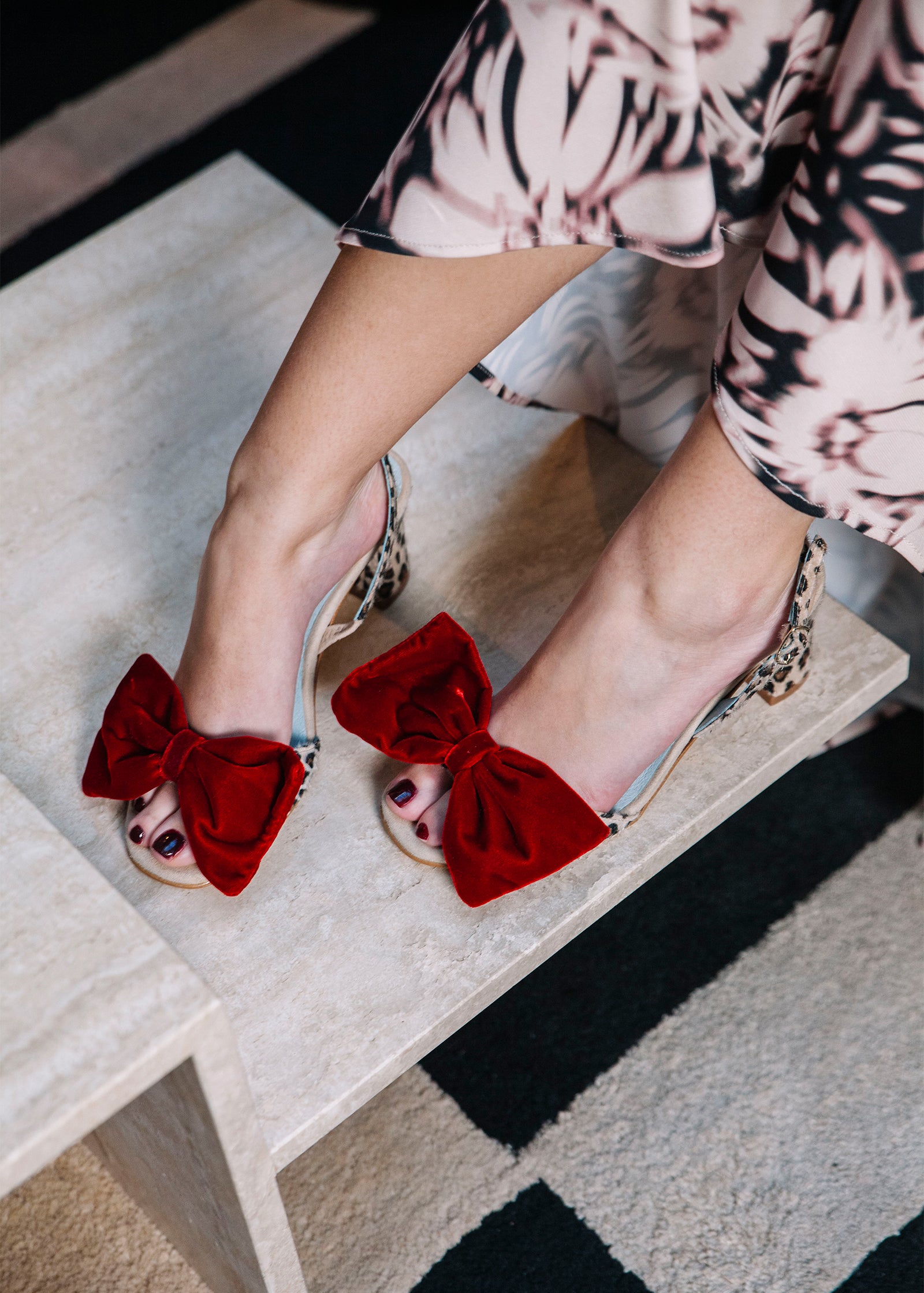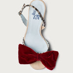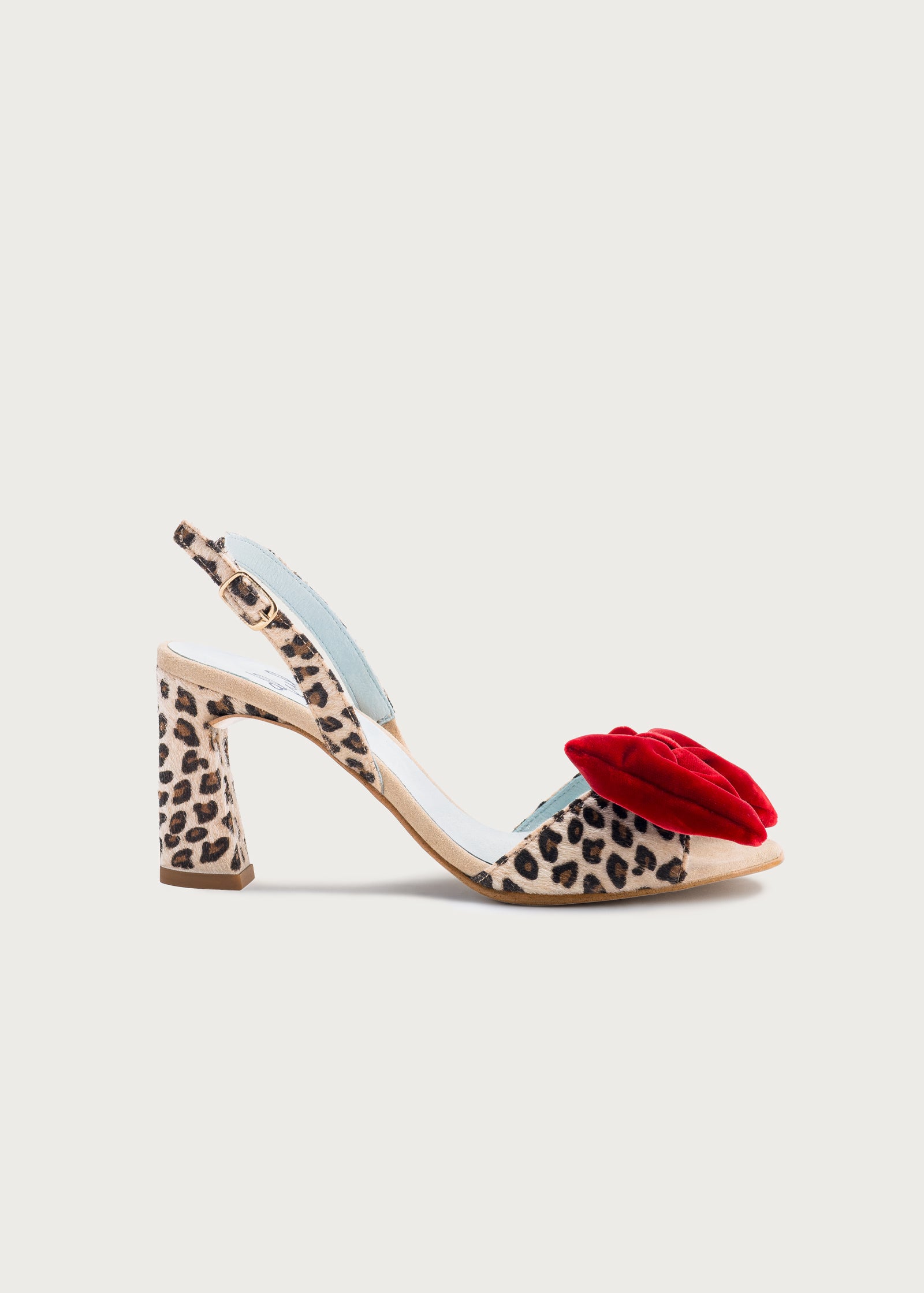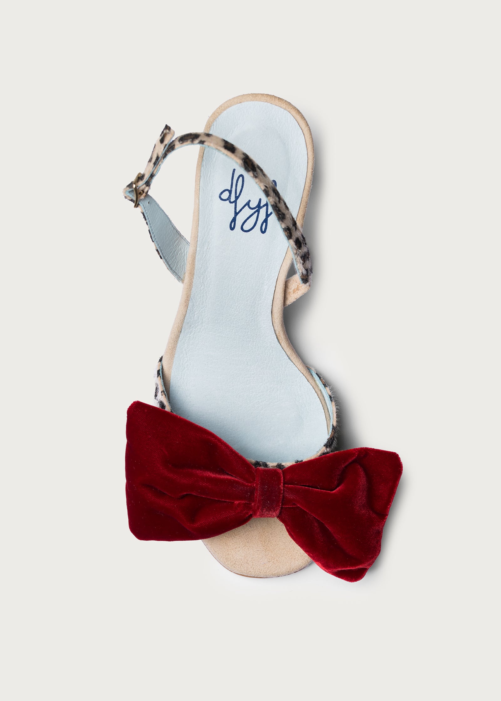 Sandalia femenina de tacón medio (6,5 cm), diseñada y producida de forma artesanal 100% en España. Un modelo elegante y especial, perfecto para invitadas y eventos.