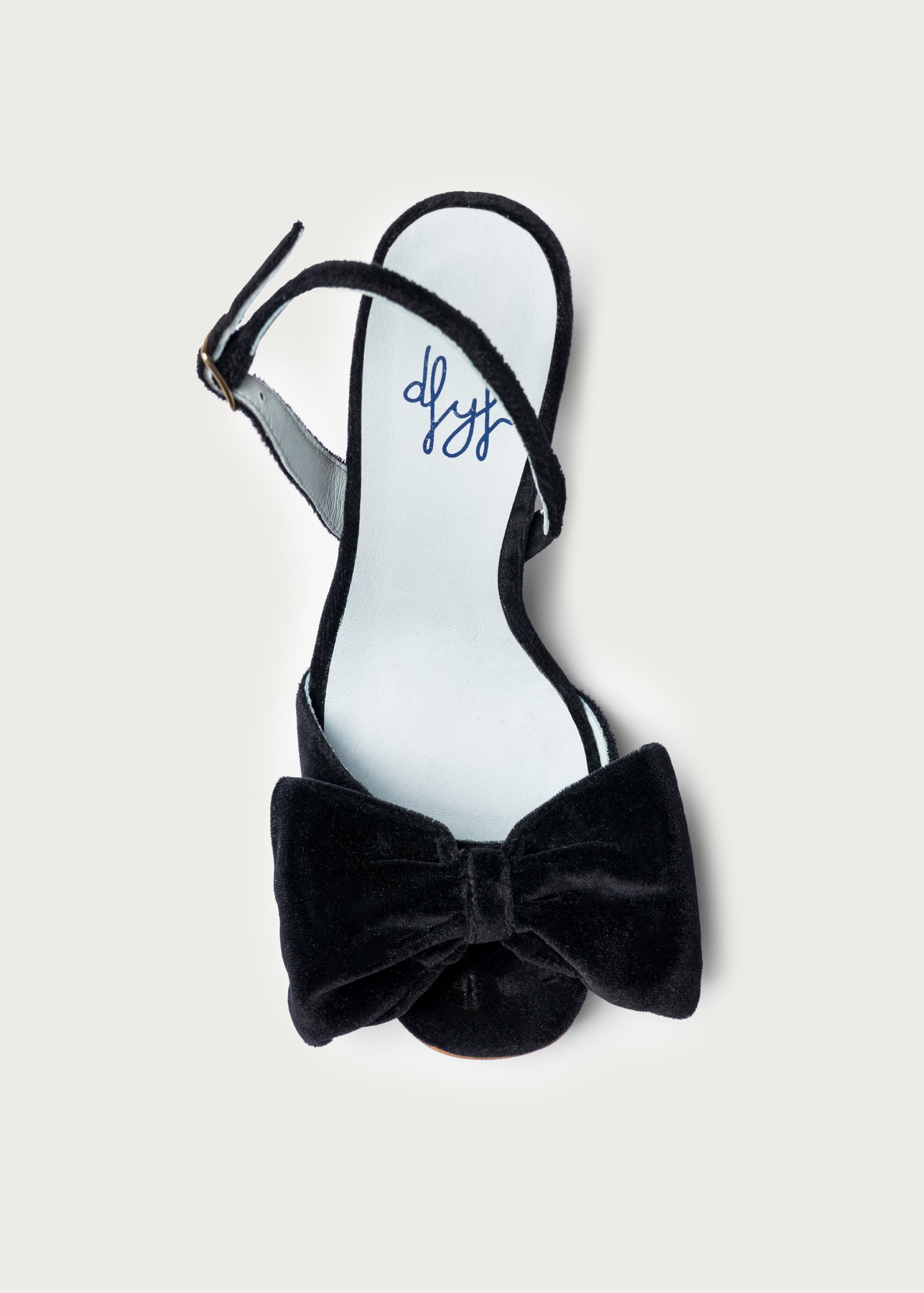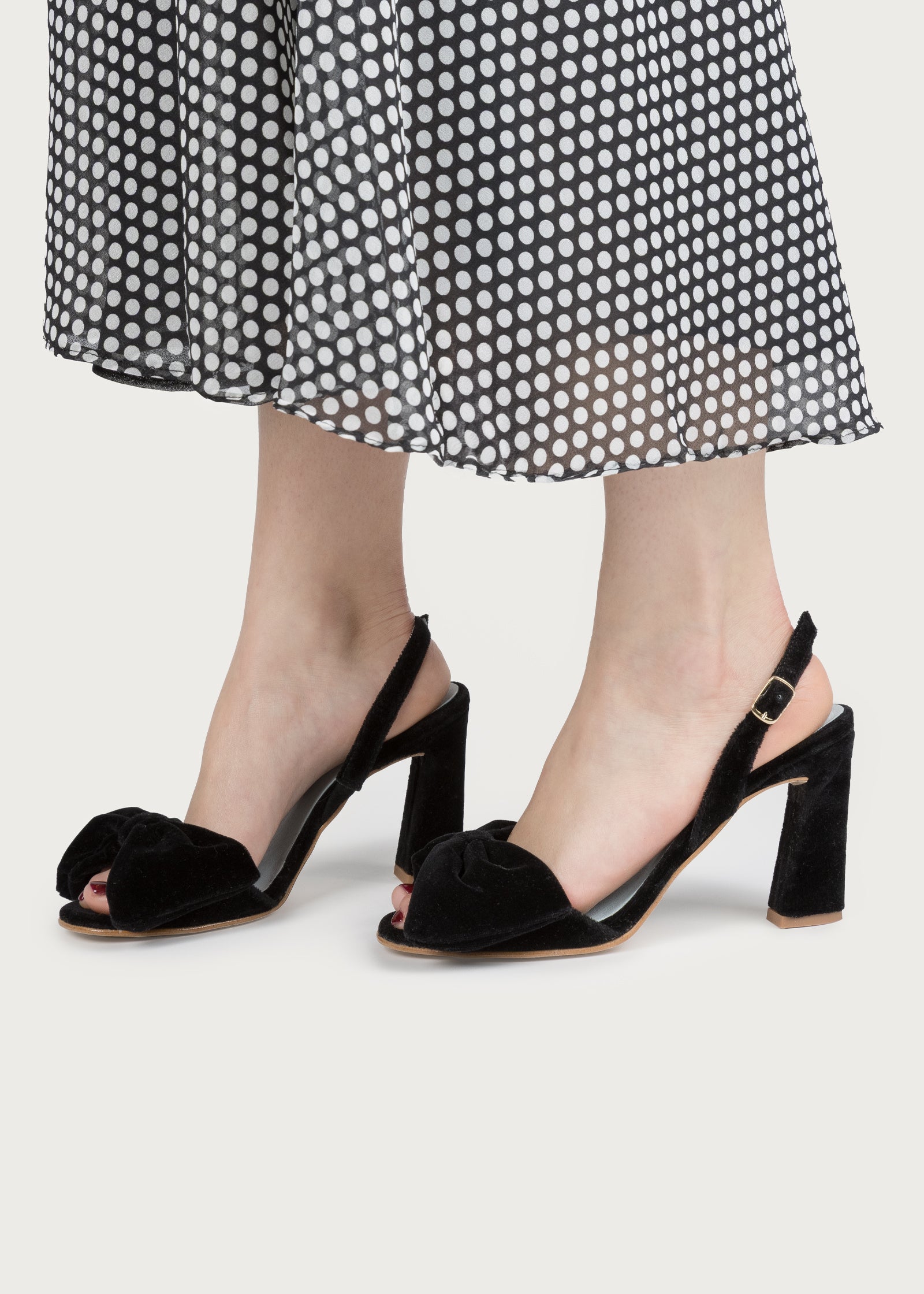 Sandalia femenina de tacón medio (6,5 cm), diseñada y producida de forma artesanal 100% en España. Un modelo elegante y especial, perfecto para invitadas y eventos.