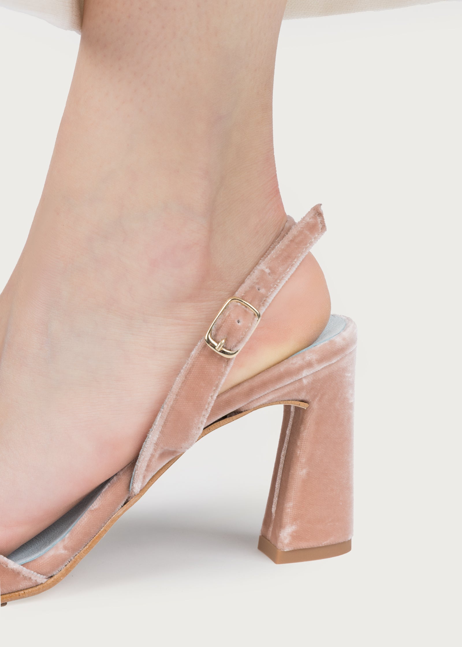 Sandalia de tacón sofisticada y cómoda, ideal para ocasiones especiales con sello artesanal.