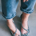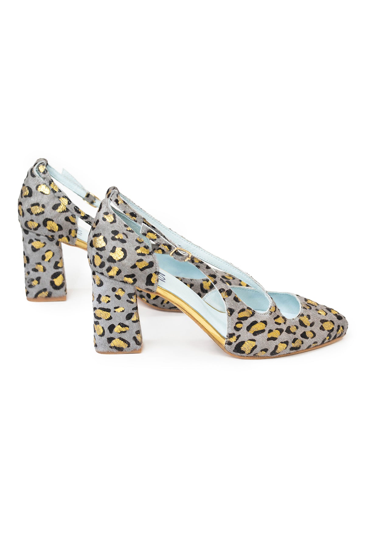 Kiev Gold es uno de los diseños clave de la temporada: un tacón de piel de potro en color gris, con estampado de animal print en negro y dorado. Presenta aberturas estratégicas y pulsera con hebilla lateral, que definen su elegante línea. Su tacón ancho y robusto es, sin duda, el sello de identidad de Kiev. Le confiere confort, pero sobre todo: carácter.