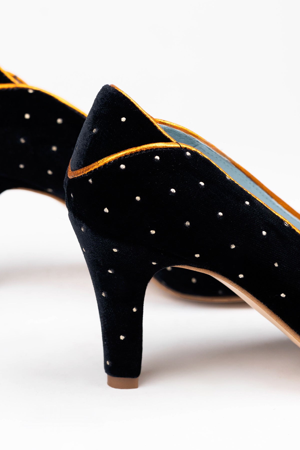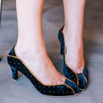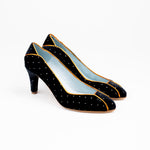 Zapatos de tacón de línea clásica, diseñados y producidos de forma artesanal 100% en España. Están elaborados con materias primas de alta calidad, seleccionadas al detalle.