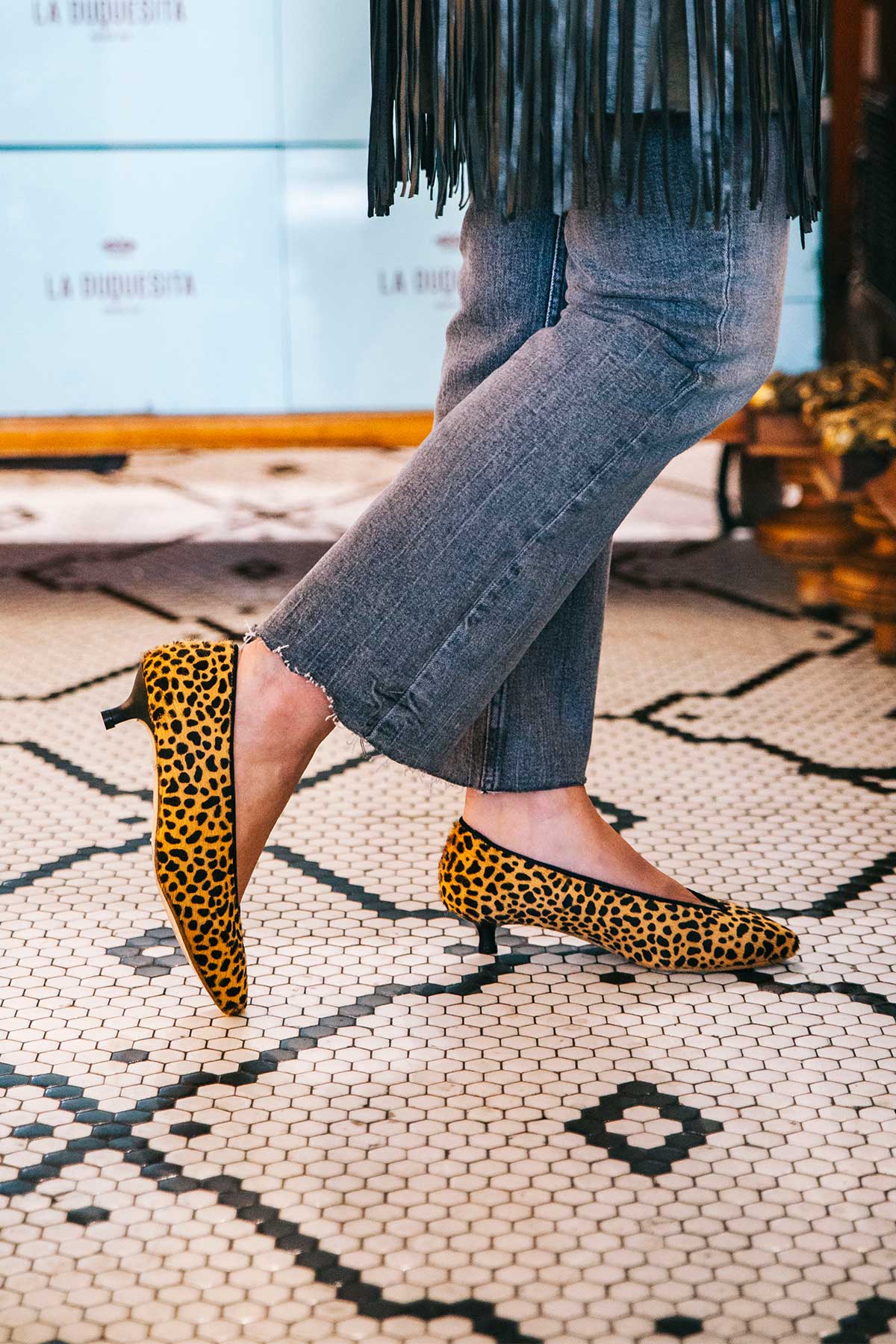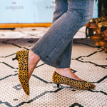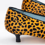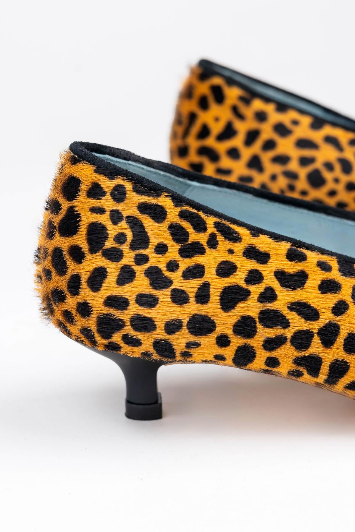 San Petersburgo Black es un diseño que respira fantasía. Presenta un print animal que combina negro y ocre, que le confiere un contraste muy divertido. Es un zapato de silueta cerrada, rematado con un ribete en ante negro. De un primer aspecto puede parecer una bailarina pero en realidad esconde un tacón chupete redondo ideal que le confiere altura y una gran personalidad.