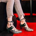Zapatos de tacón de línea clásica, diseñados y producidos de forma artesanal 100% en España. Están elaborados con materias primas de alta calidad, seleccionadas al detalle.