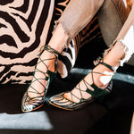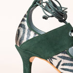 Goya es un clásico salón combinado con napa grabada y napa brillante en verde. Con cordón y borla a juego. Un modelo clásico y atrevido que sienta de maravilla.