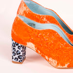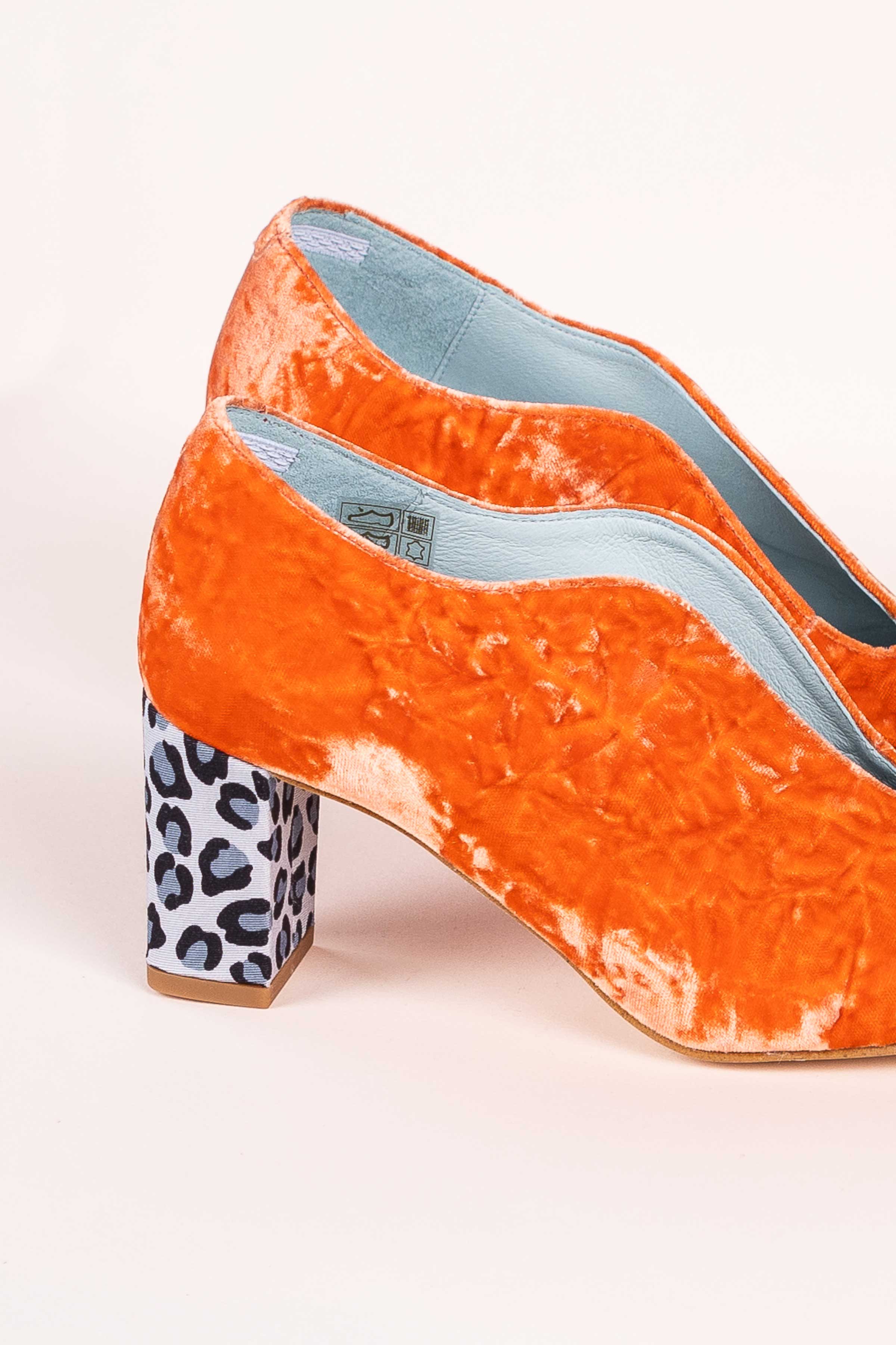 Zermatt es una joya inesperada. Un tacón en terciopelo de seda con tacón a contaste en animal print. Este diseño presenta una abertura estratégica en empeine, que hace el pie súper femenino, aportando una línea muy elegante y estilosa.