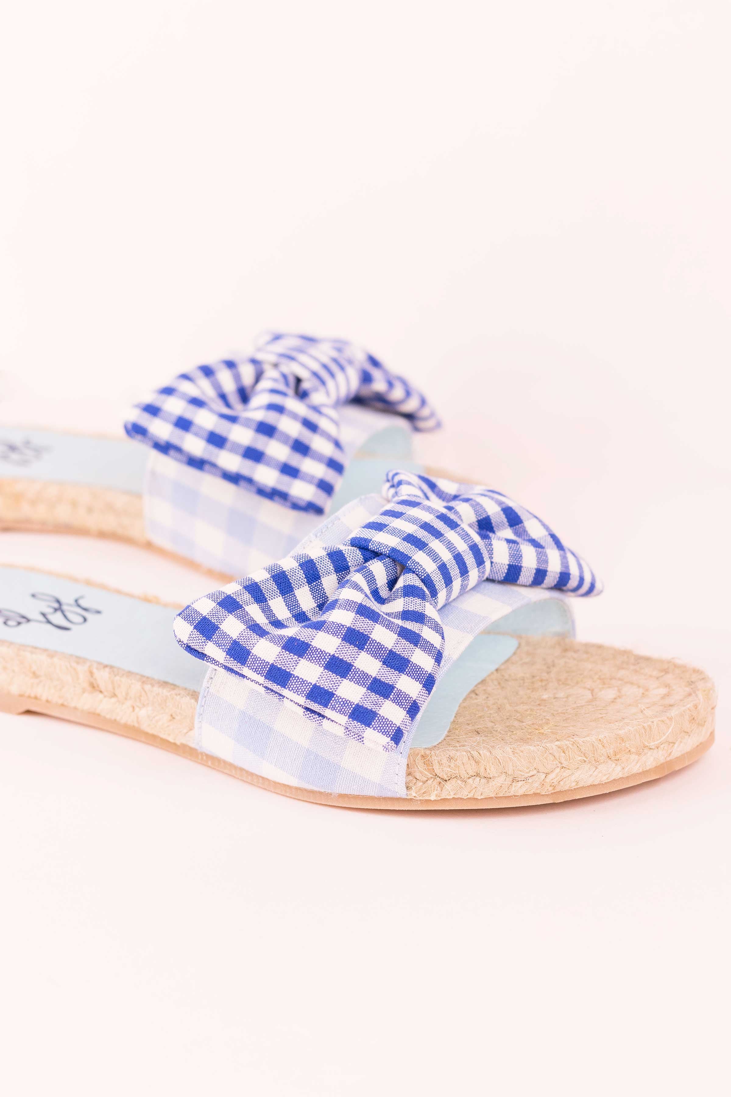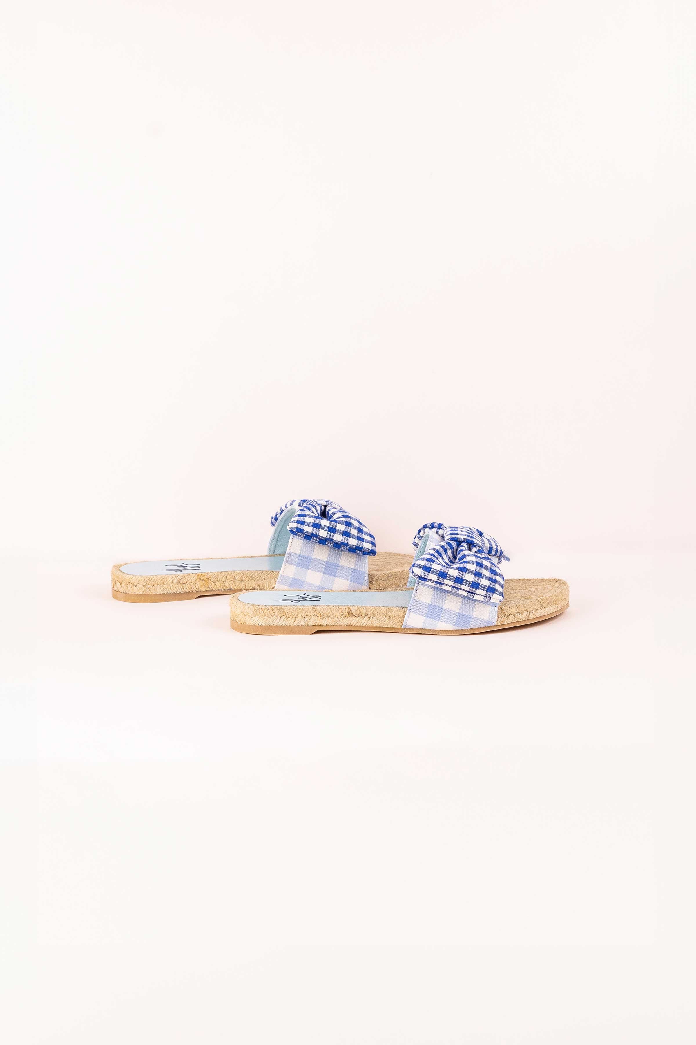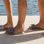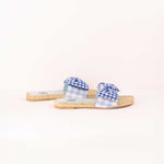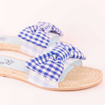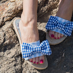 Yute hecho a mano combinado dos tipos de vichy en pala y lazo en tono navy y celeste