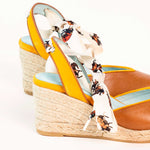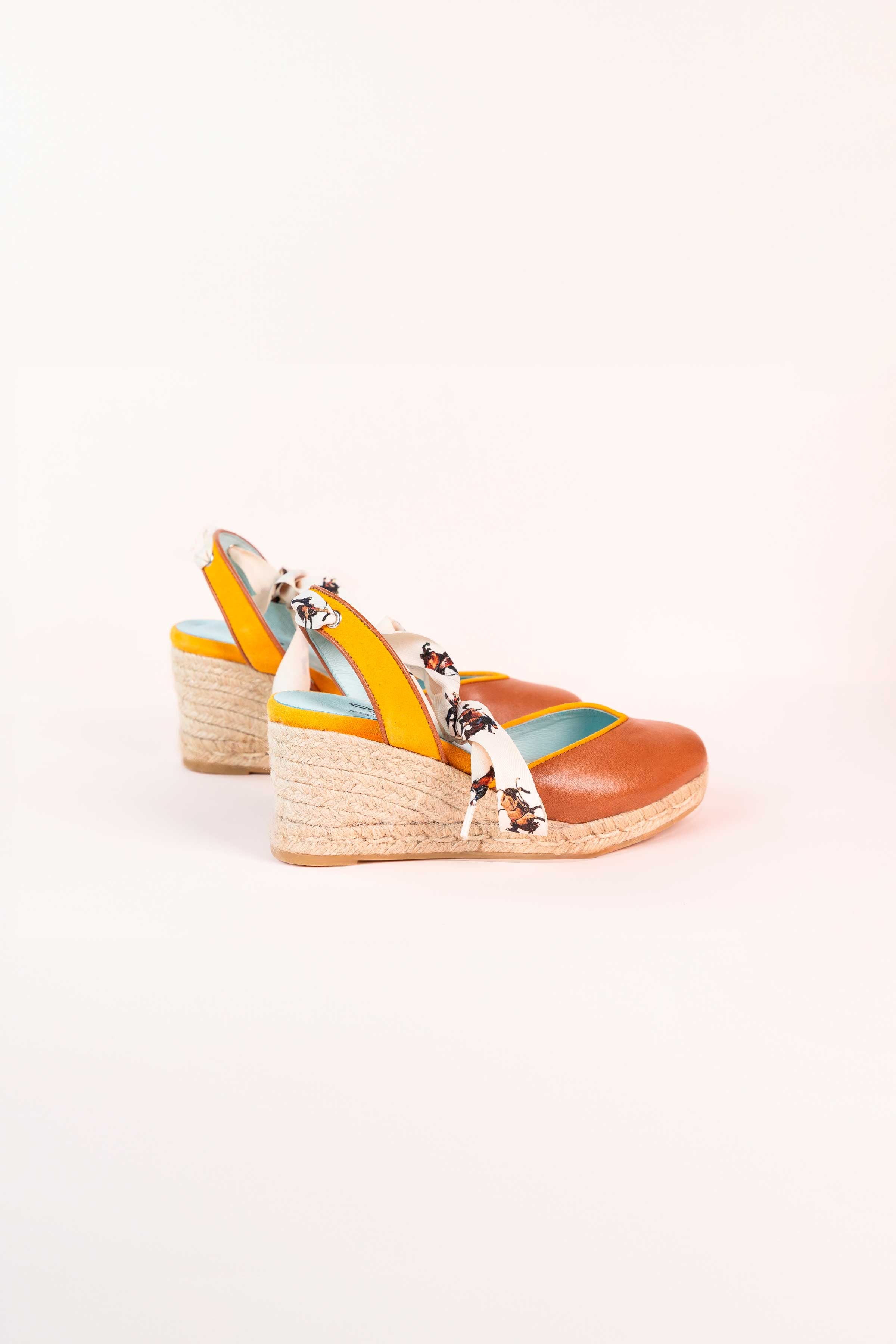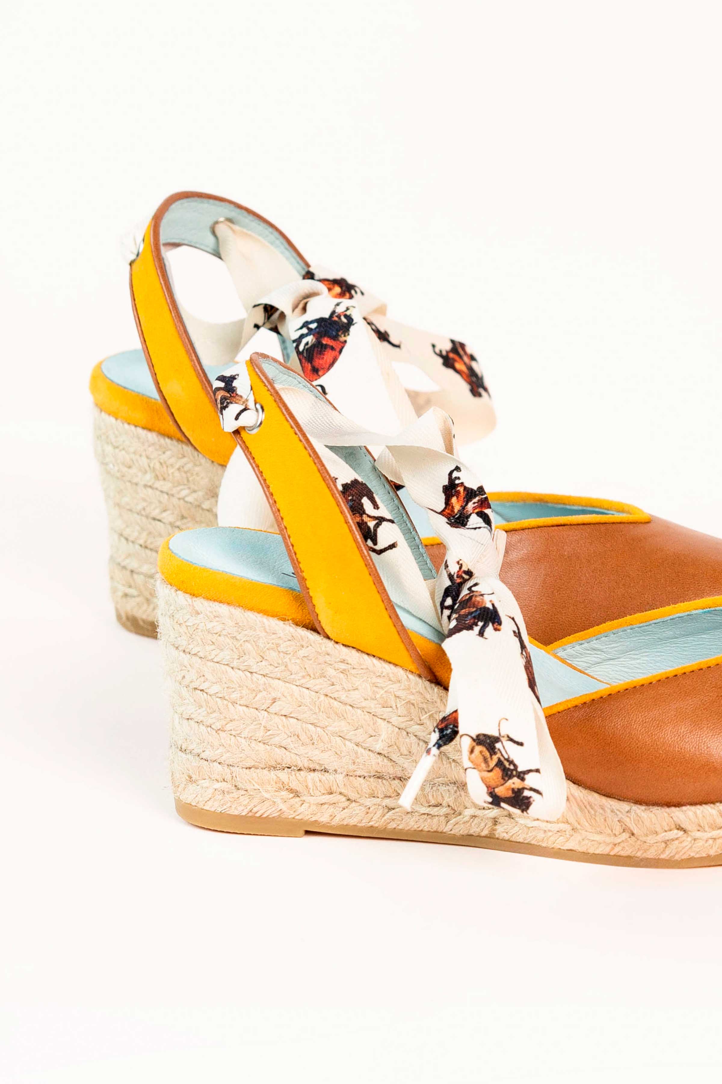 Cuña de yute de 5 cuerdas con 5 cm de alto, con punta en napa. Interior de piel. Cordón de cinta 'Made in Spain'. Interior 100% piel. Suela de cuero. Modelo exclusivo de defloresyfloreros, diseñado y fabricado en España.