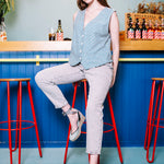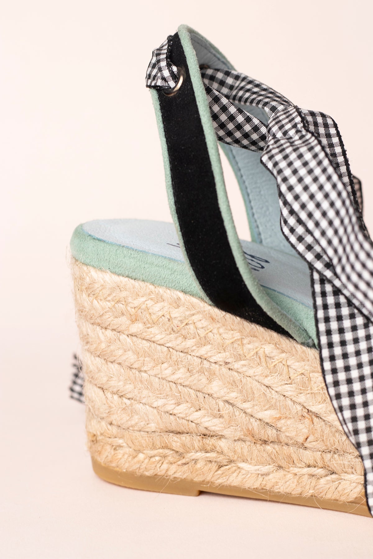 Yute de 5 cuerdas en napa negra y cintas vichy.