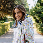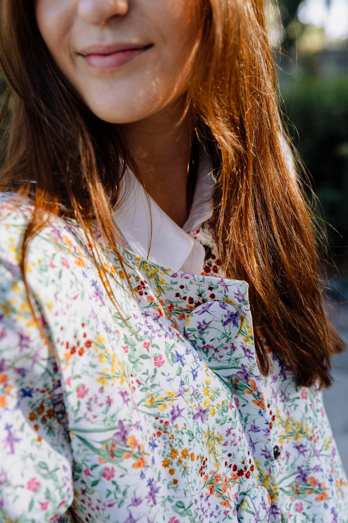 Gabardine, 100 % entworfen und gefertigt in unseren Werkstätten in Spanien. Hergestellt aus schwerem, halb wasserabweisendem Baumwollstoff mit dem deflores-Blumenmuster und einem kontrastierenden Polyesterfutter in Erdbeerfarbe. Das besondere Merkmal sind die abnehmbaren Ärmel: Sie lassen sich mit verdeckten Knöpfen abnehmen und verwandeln das Kleidungsstück in eine Weste. Auf der Brust befinden sich Druckknöpfe und dekorative, mit Stoff bezogene XL-Knöpfe. Außerdem verfügt diese Gabardine über eine speziell angefertigte Schulterpolsterung in einer besonderen Höhe, maßgeschneidert für dfyf, mit Futter aus dem gleichen Hauptstoff.