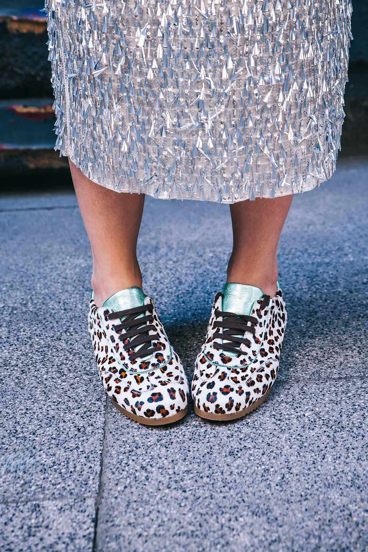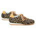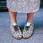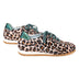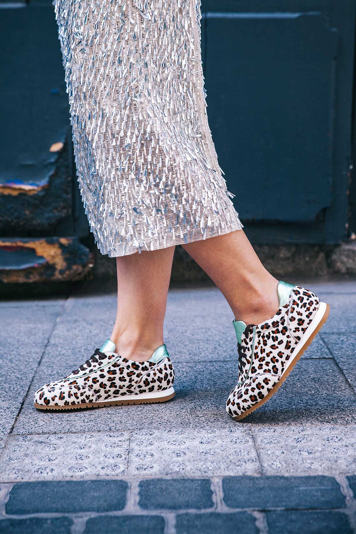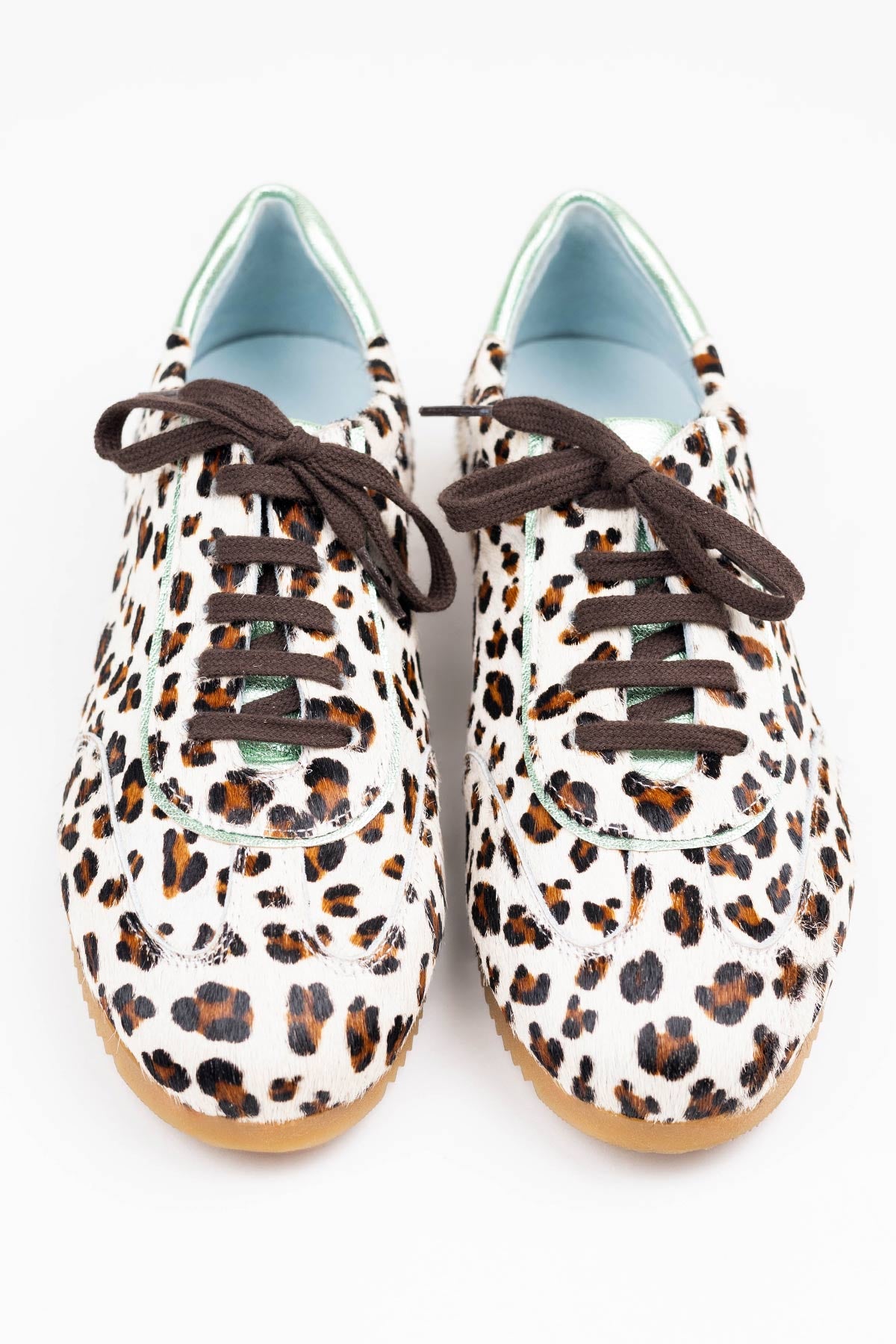 Der Running Bucarest wird handgefertigt und zeigt außen nur 8 verschiedene Teile. Er kommt mit einer herausnehmbaren, noch stärker gepolsterten Innensohle und einem kleinen, innenliegenden Keil, der nicht sichtbar ist, für ein superkomfortables Tragegefühl. Bucarest Napa ist ein Modell mit Premium-Finish, mit Zunge, Ferse und Kragen aus schillernd grünem Leder, im Kontrast zum Hauptprint. Die Nähte werden besonders sorgfältig ausgeführt.