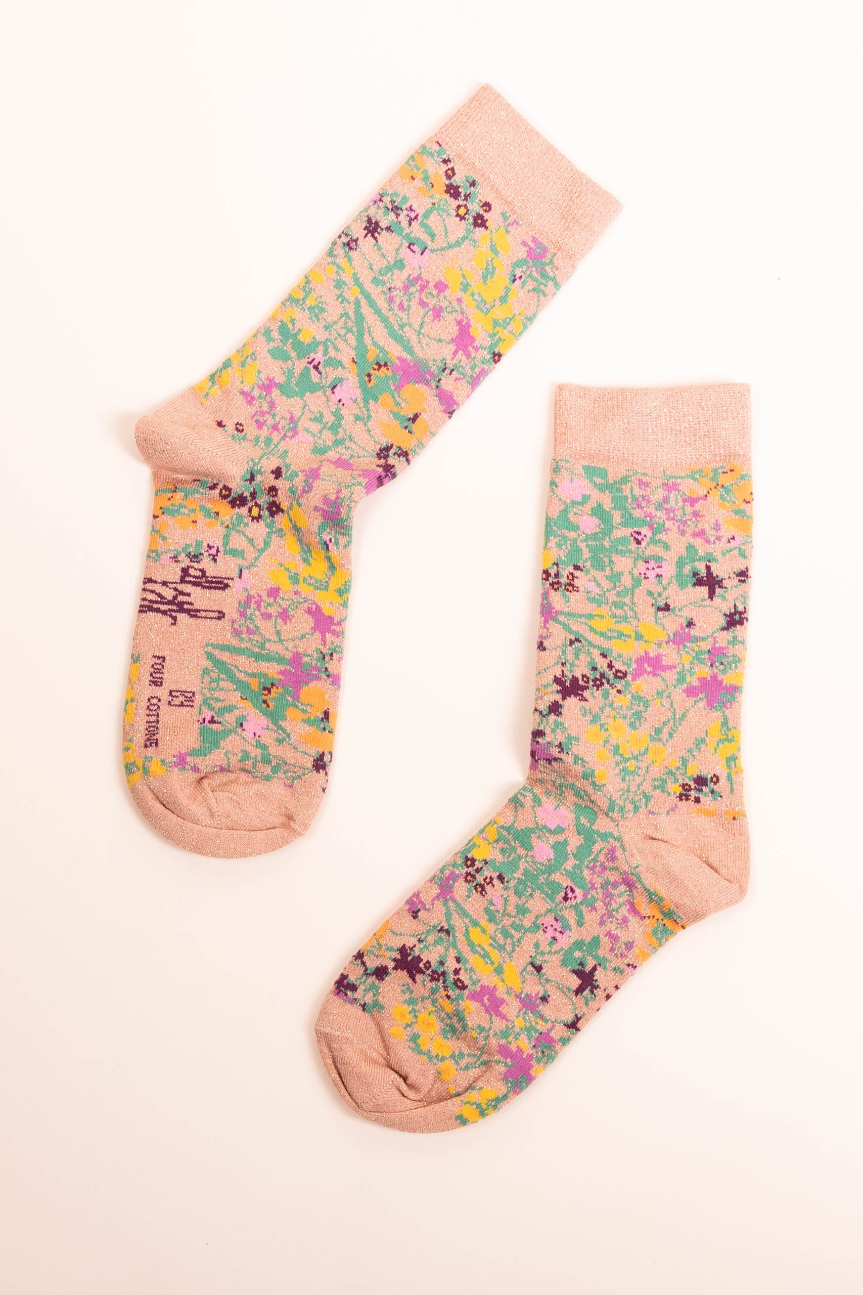 Glitter base sock with flower print dfyf. Mid-calf. One size.