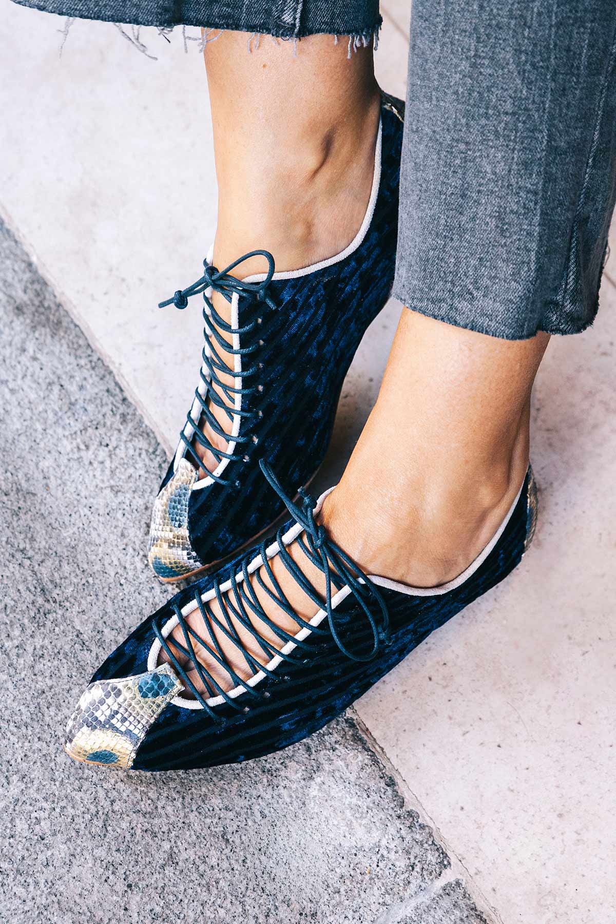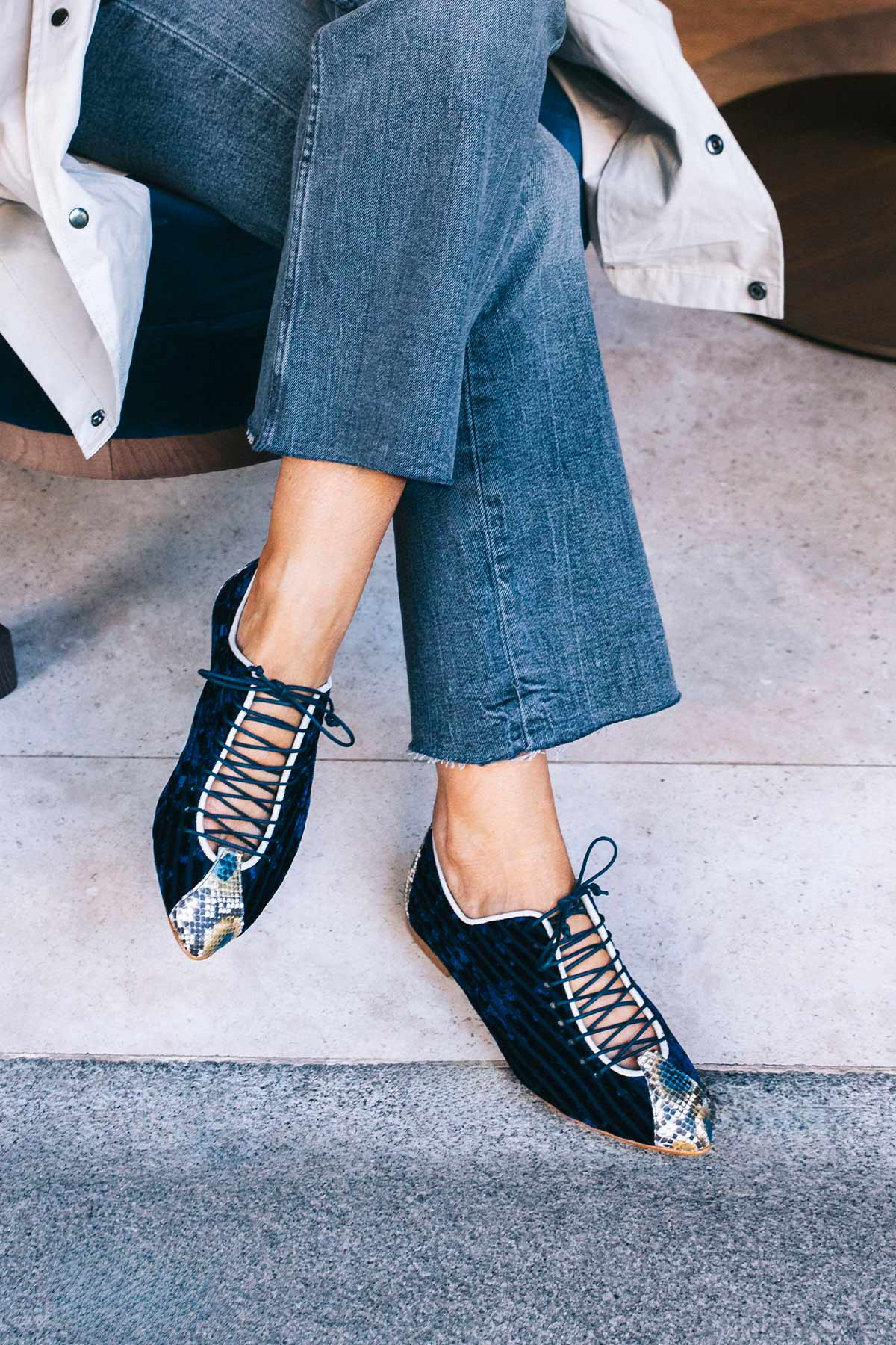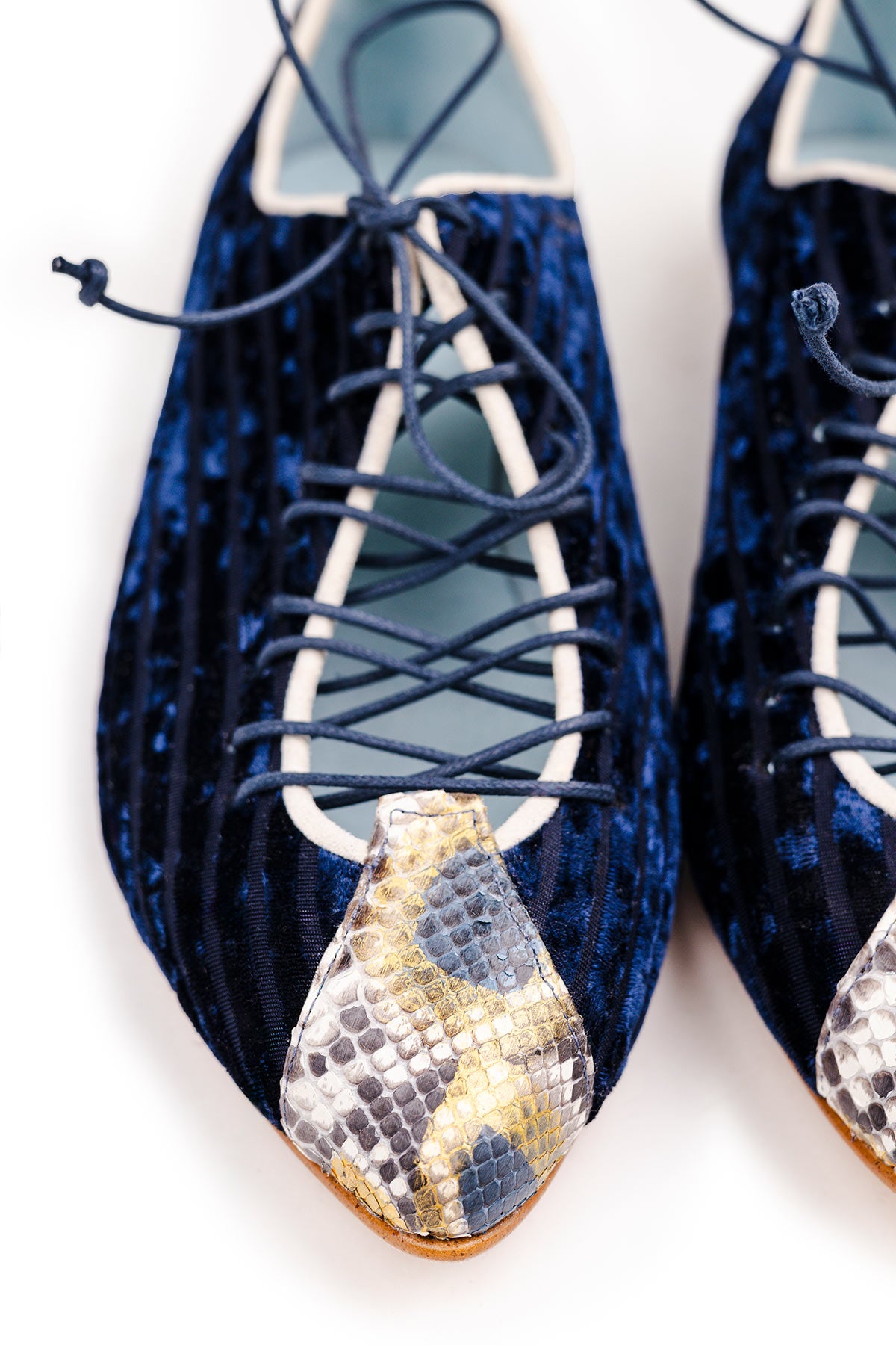 What we like most: Its blue velvet contrasts with the python toe cap.
