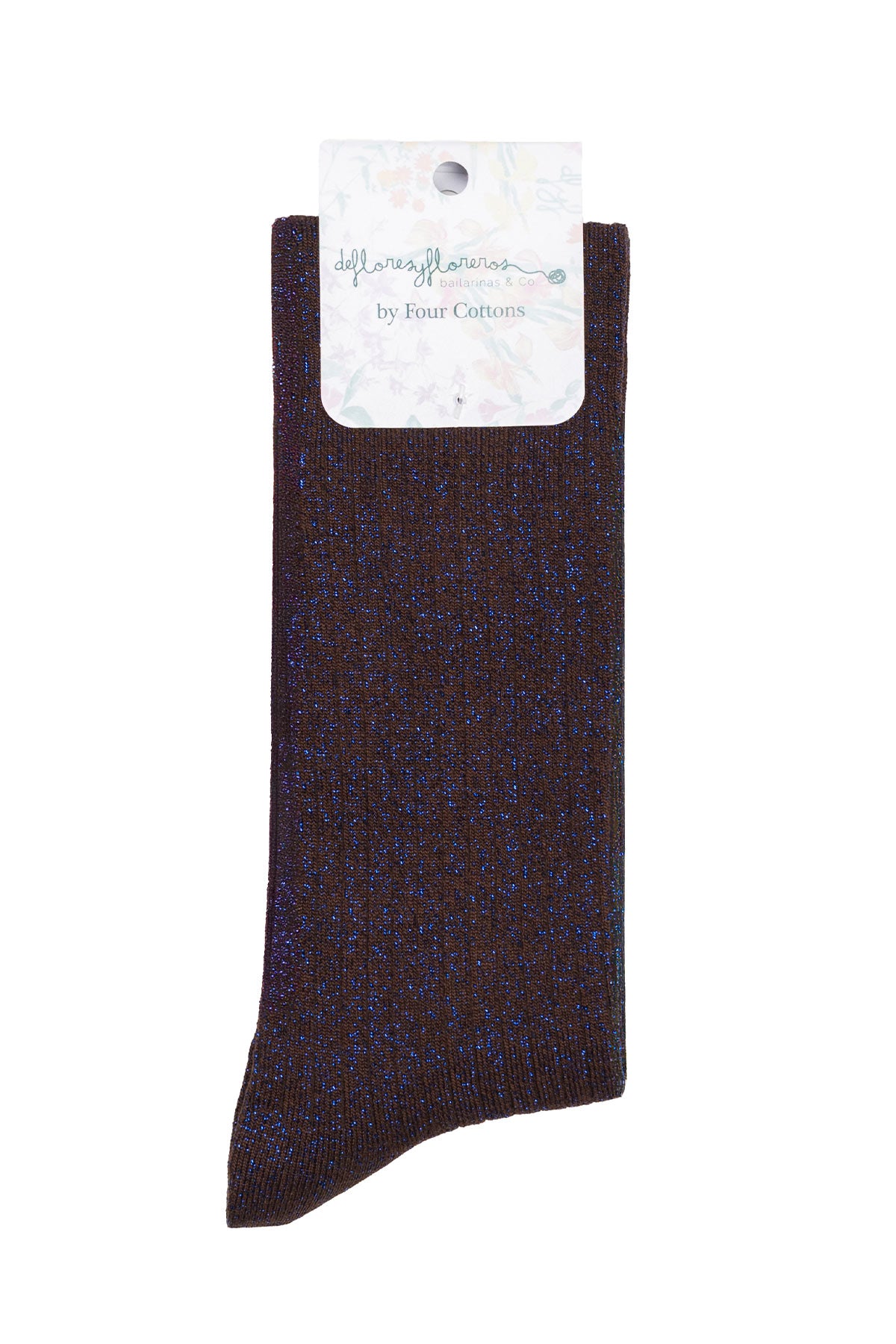 Calcetín de algodón de caña alta bicolor. Diseño con puntera y faja del mismo color y glitter.