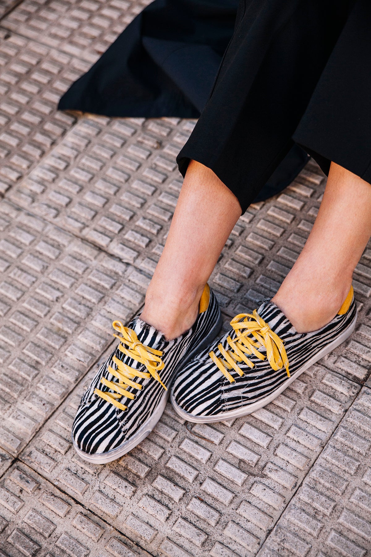 Running shoe with 100% animal print. Ocher-colored laces matching the leather heel counter. Leather interior. Made in Spain. All our models have a 1.5 cm internal wedge. 100% leather interior. Leather sole. Exclusive model from defloresyfloreros, designed and manufactured in Spain.