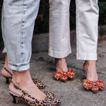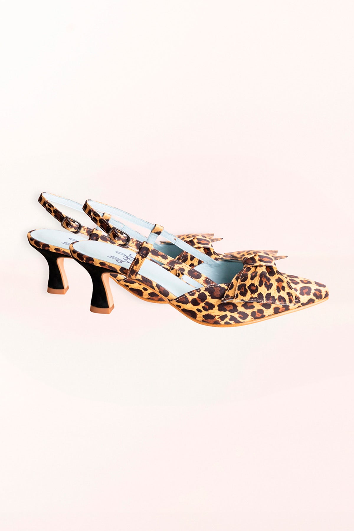 Miguel Ángel est un talon coquet ouvert à l'arrière en satin imprimé dans des tons orange avec un double nœud du même matériau. Ce design est parfait pour toute occasion : jean et chemise ou un événement.