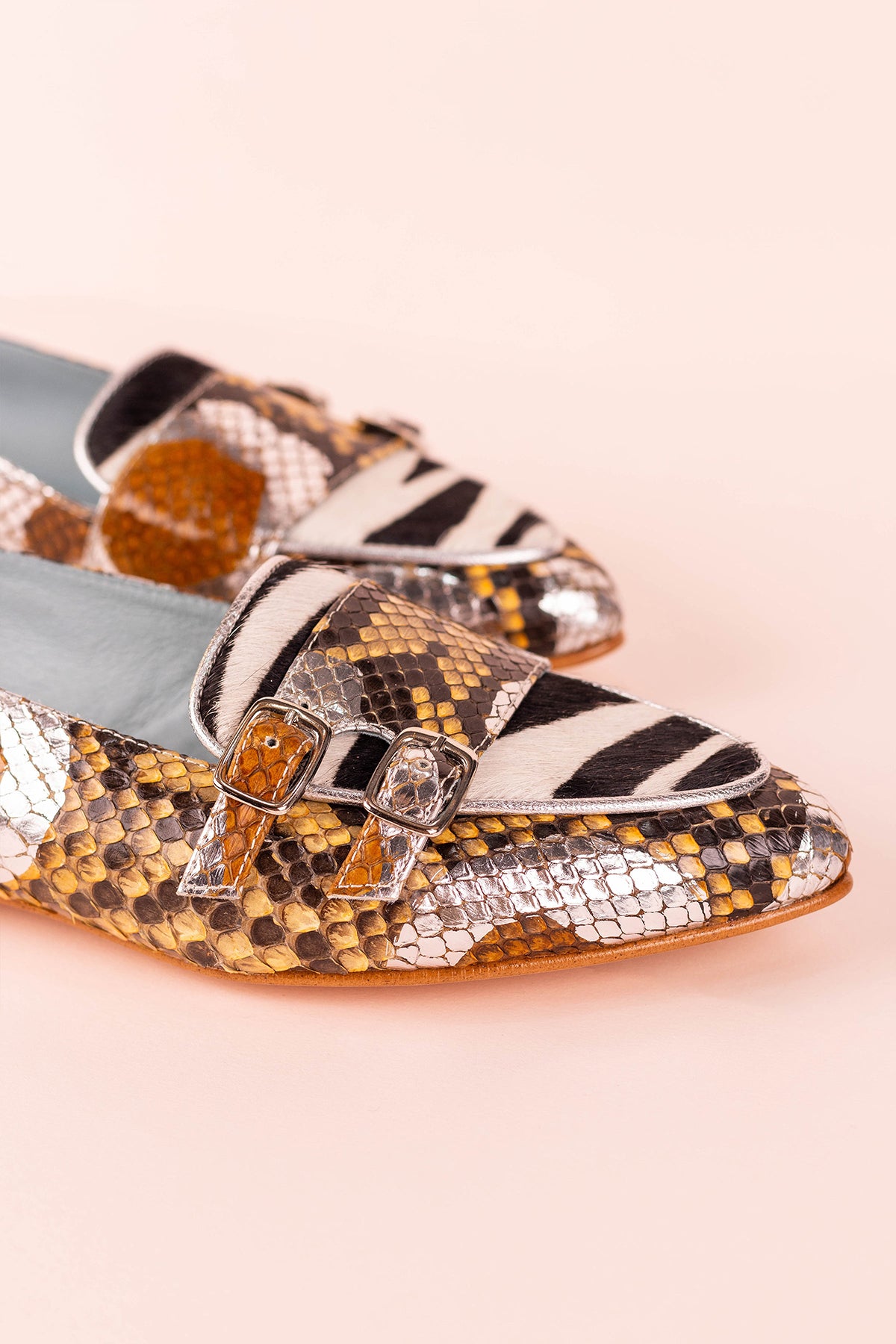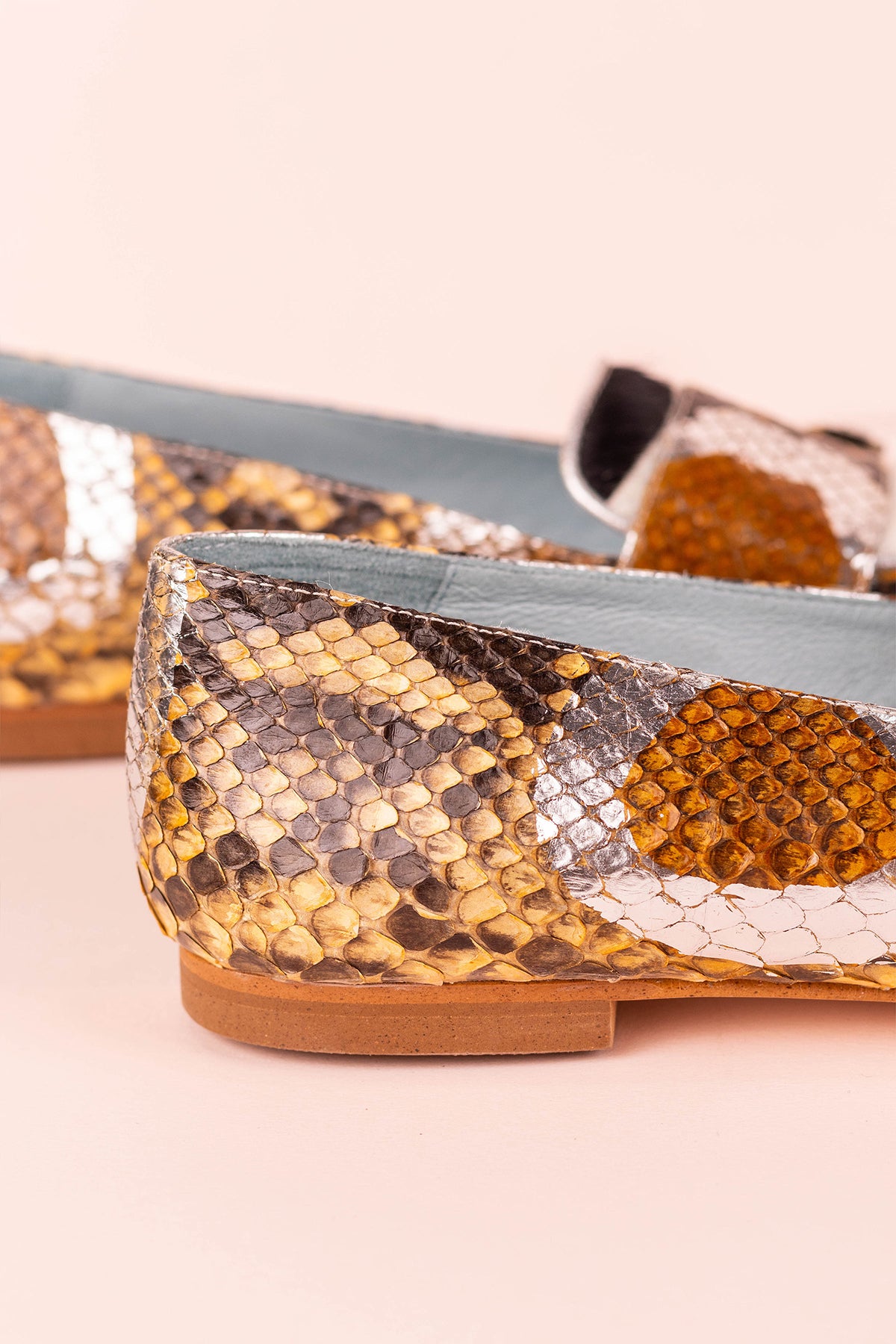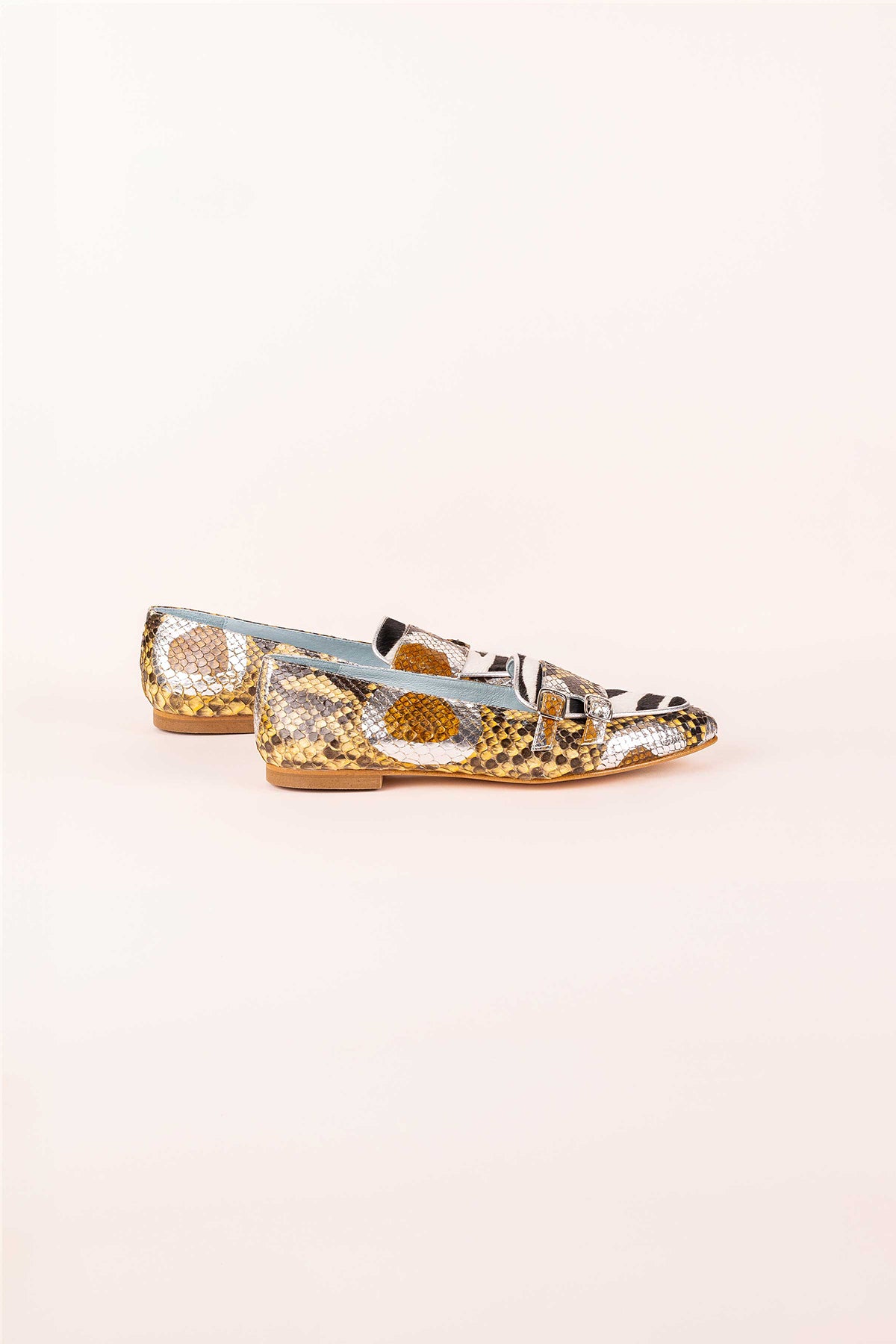 Cornalina è un blucher dal design originale, completamente diverso da tutti gli altri. È realizzato con pelle di pitone dipinta a mano. La combinazione di pitone e dorato emana stile. Quanto sono comodi ti farà venir voglia di indossarli tutti i giorni