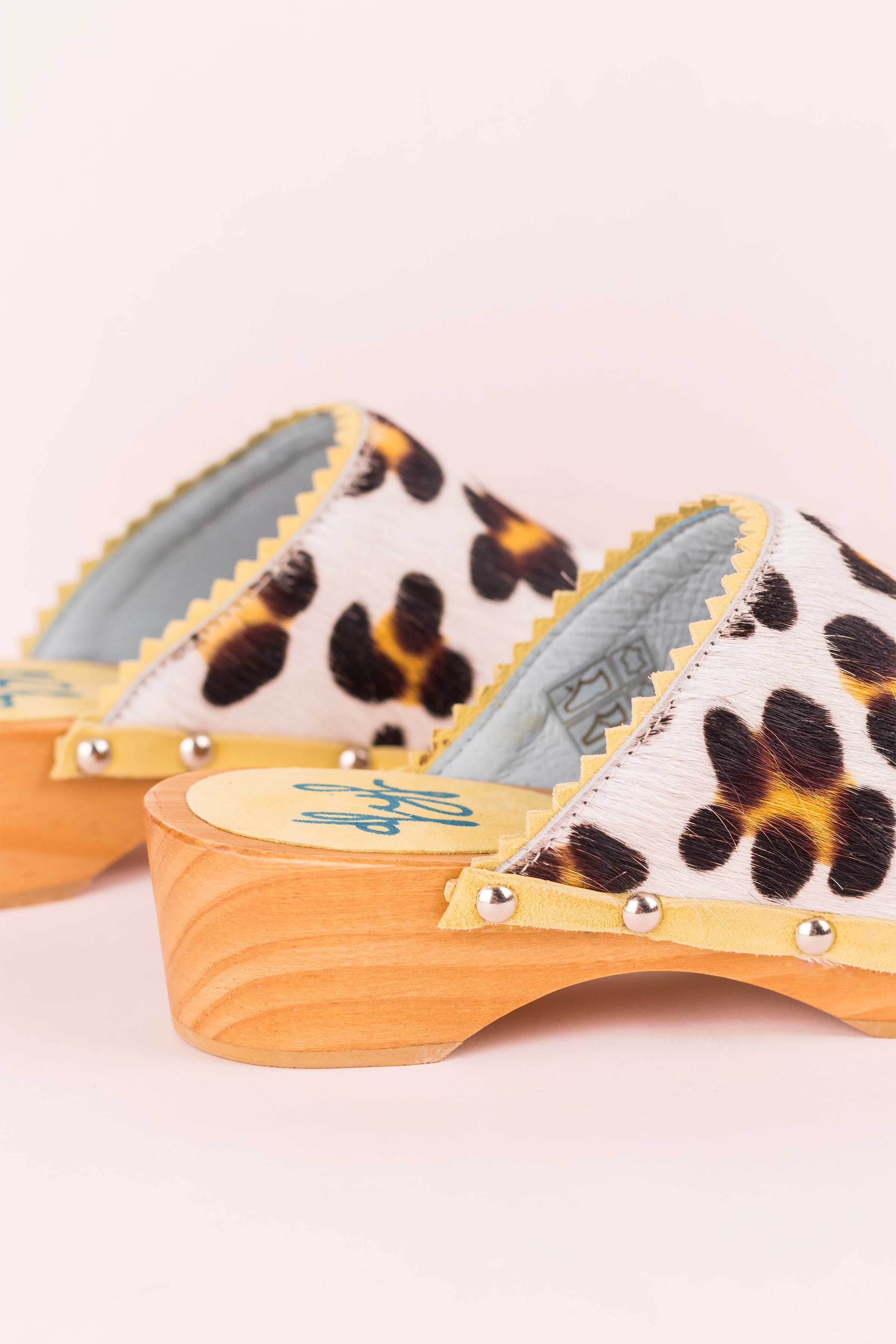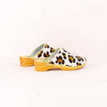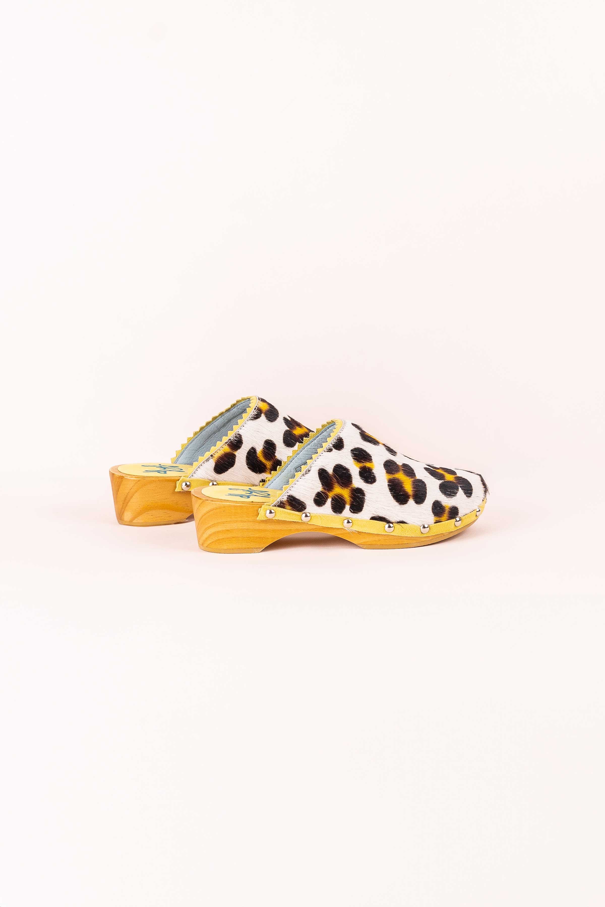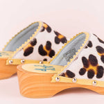 Interno in legno con tallonetta in pelle. Suola in legno con un sottile strato di gomma per evitare scivolamenti. Modello esclusivo di defloresyfloreros, progettato e prodotto in Spagna.