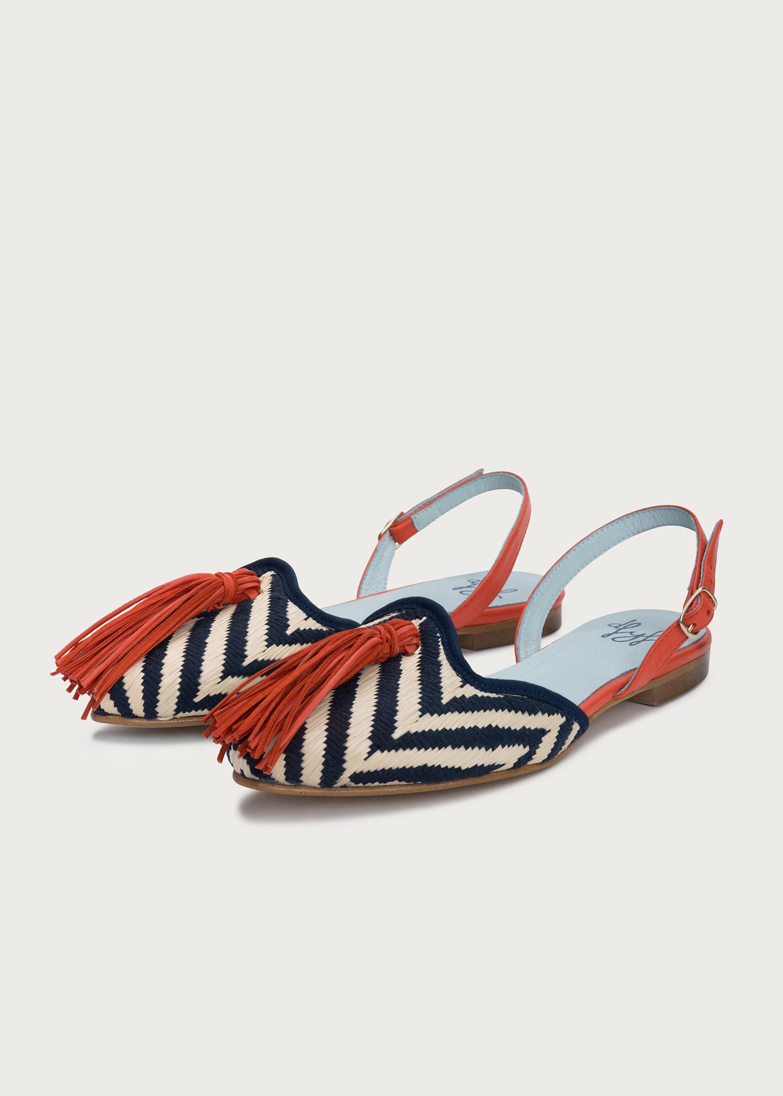 Azalea es un mule plano de inspiración artesanal que combina tradición y frescura contemporánea. Diseñado y producido de forma artesanal 100% en España, está confeccionado en una cuidada mezcla de rafia trenzada y napa, seleccionadas por su calidad, resistencia y ligereza.