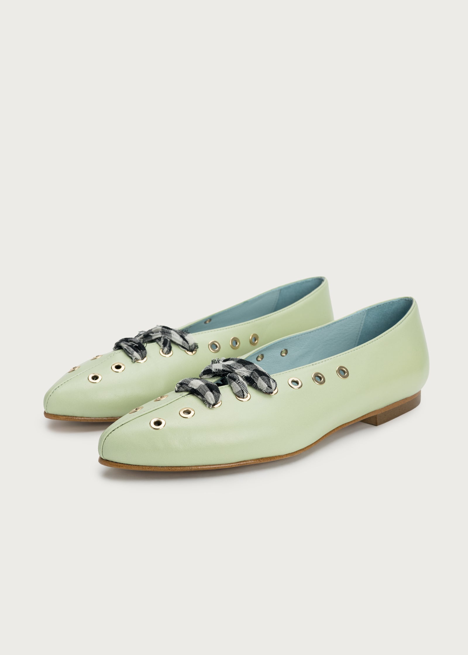 Bailarina confeccionada en piel natural de alta calidad, diseñada y producida de forma artesanal 100% en España, con materias primas seleccionadas cuidadosamente por su tacto, resistencia y acabado.