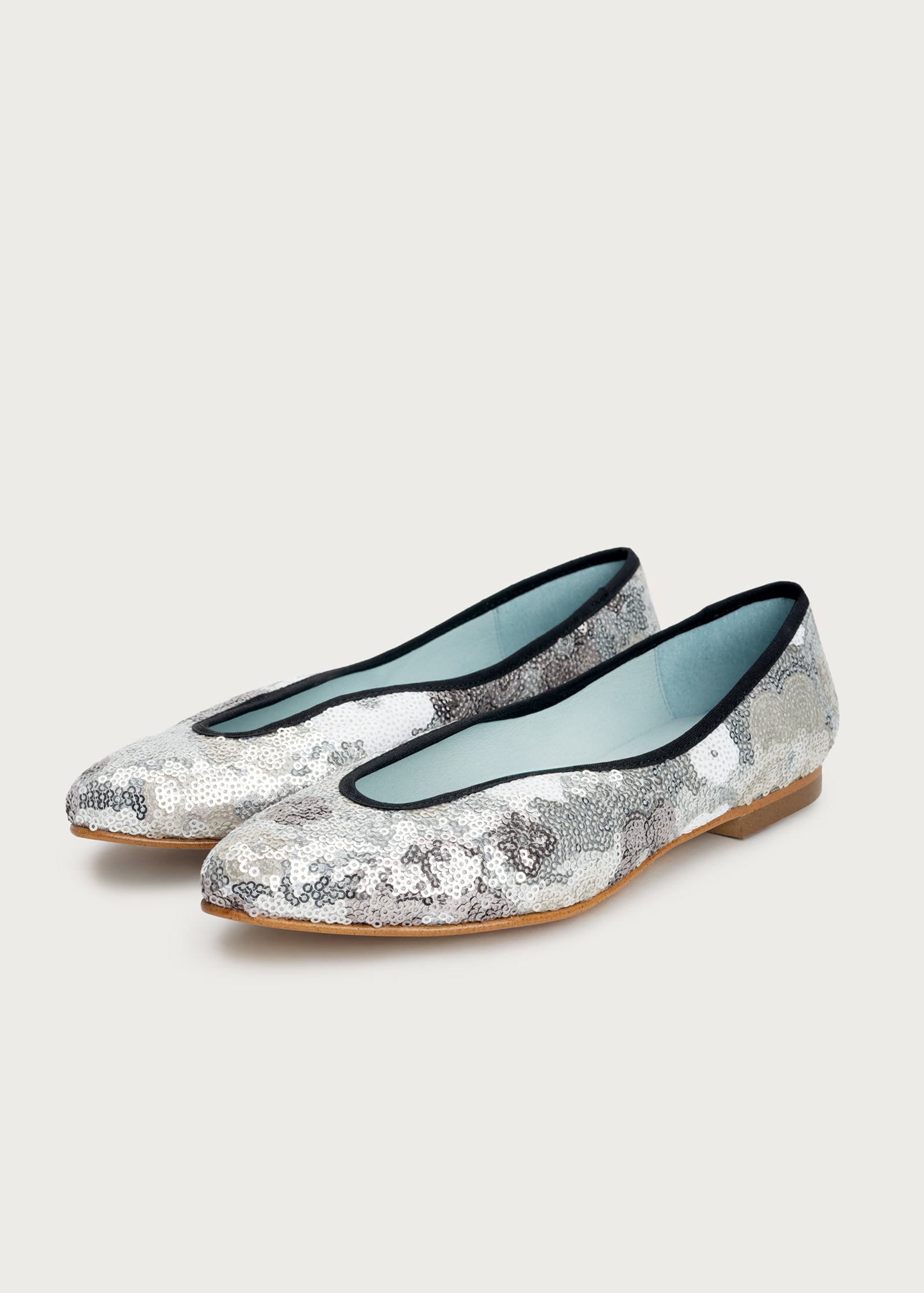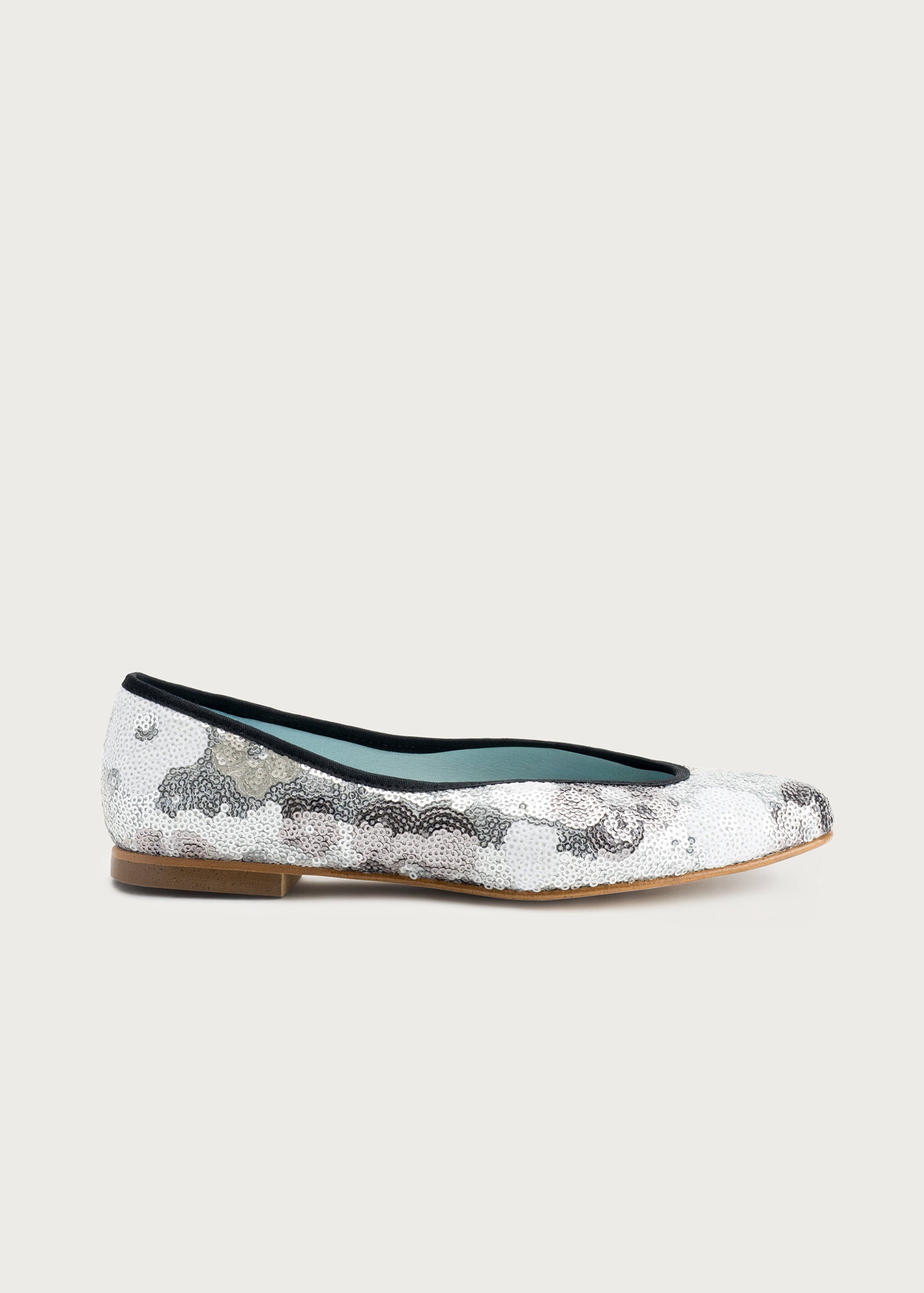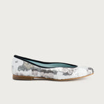 Bailarina de espíritu femenino y contemporáneo, confeccionada con lentejuelas que forman delicadas flores de colores, aportando un efecto vibrante y artesanal en cada paso. Su escote irregular realza la forma del pie, feminiza la silueta y aporta un detalle sofisticado y original.