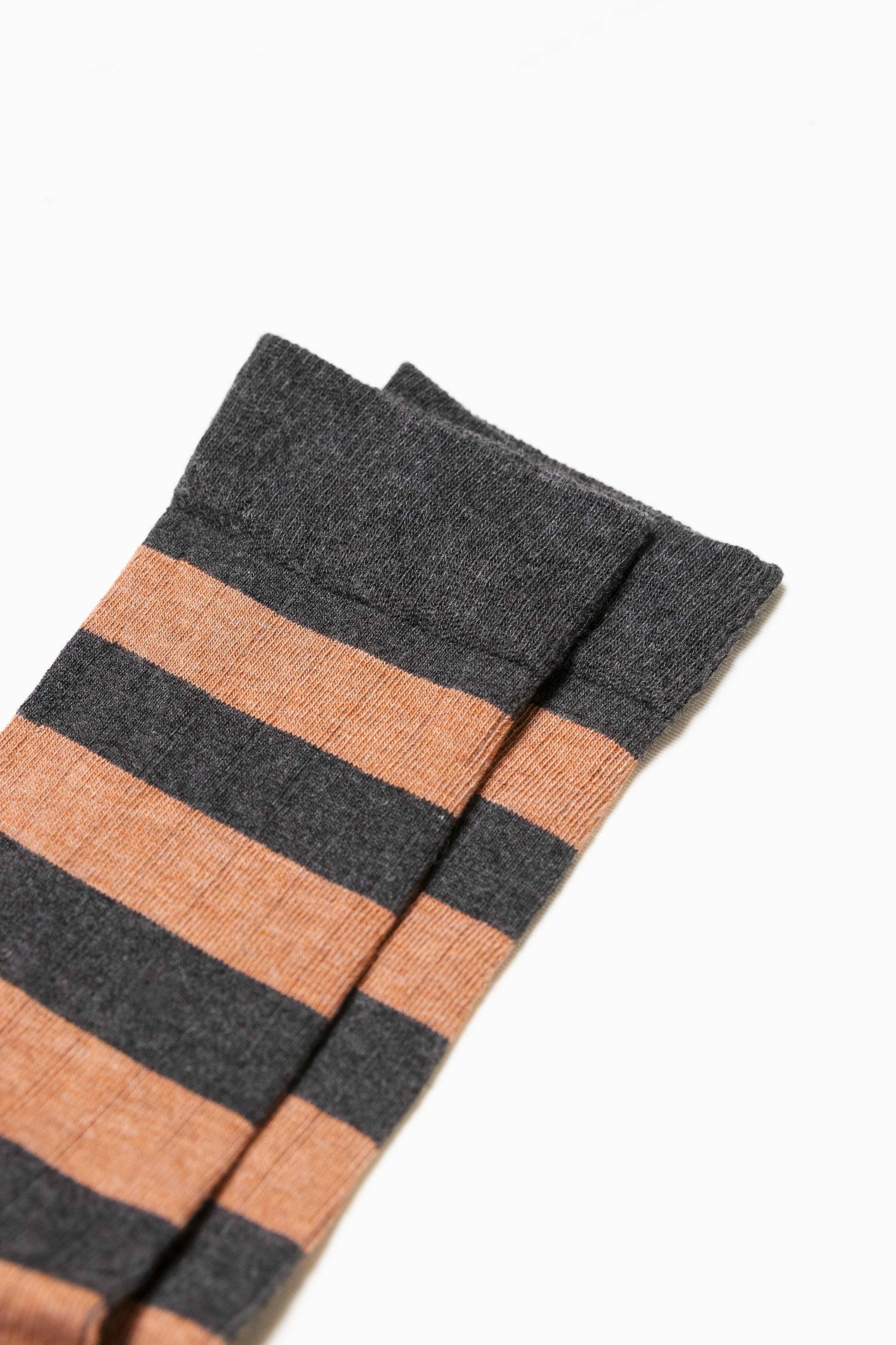 Calcetín caña media de algodón con goma que ajusta perfectamente sin marcarse en la piel. En tono gris marengo y melocotón.