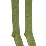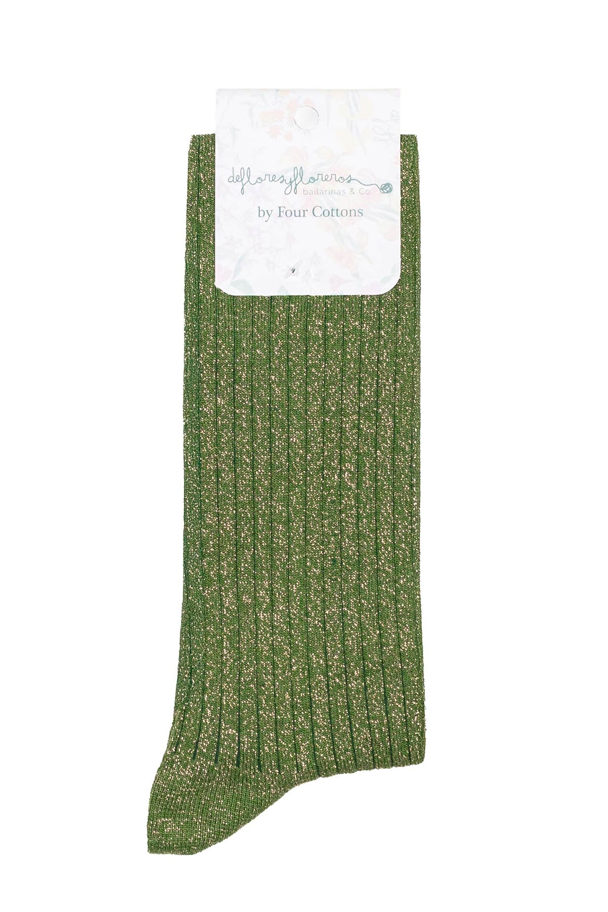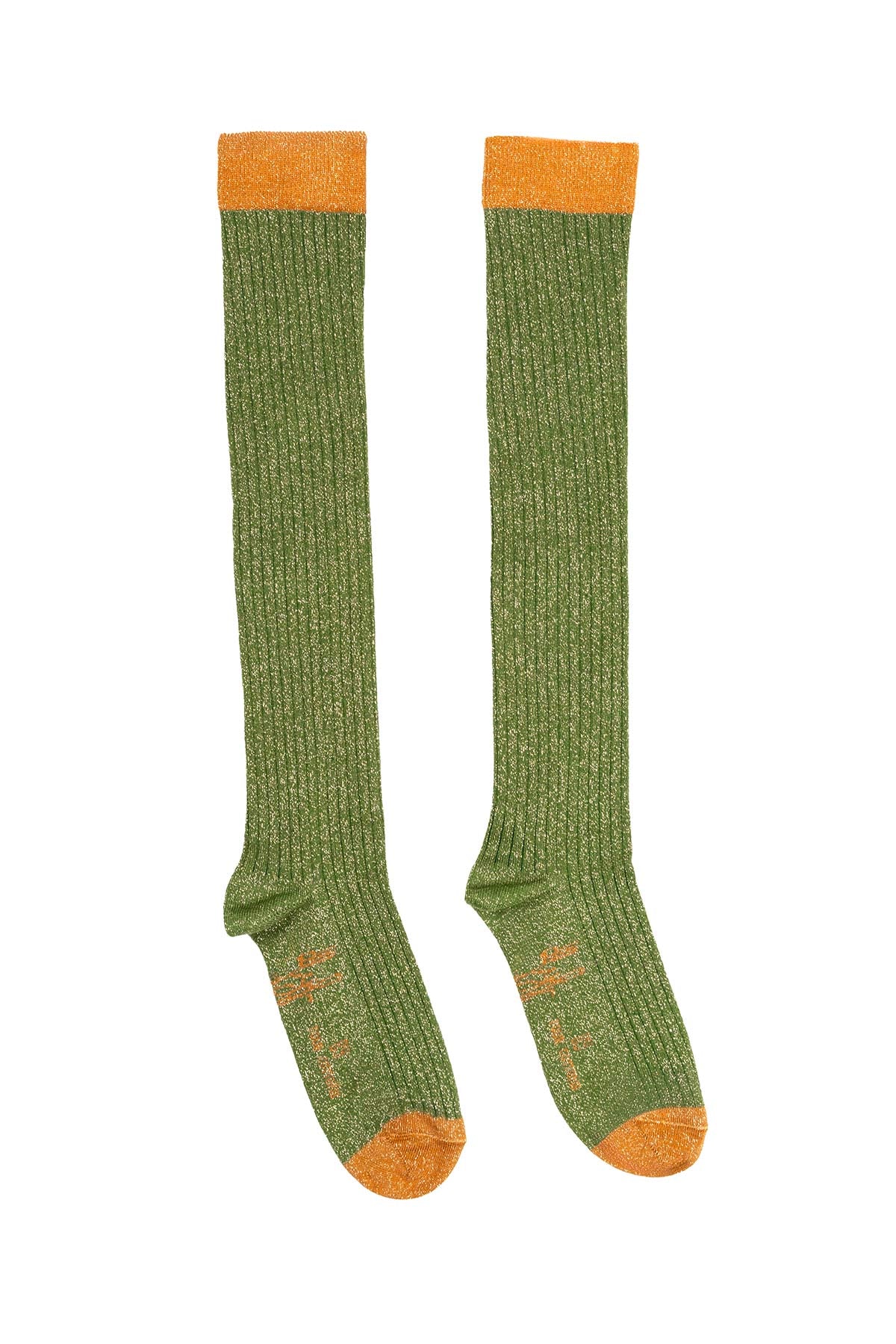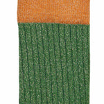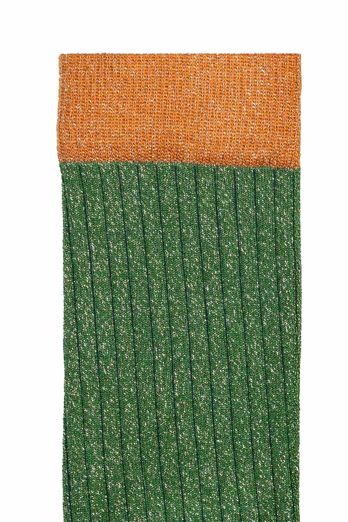 Meia de algodão de cano alto bicolor. Design com biqueira e faixa da mesma cor e glitter.
