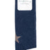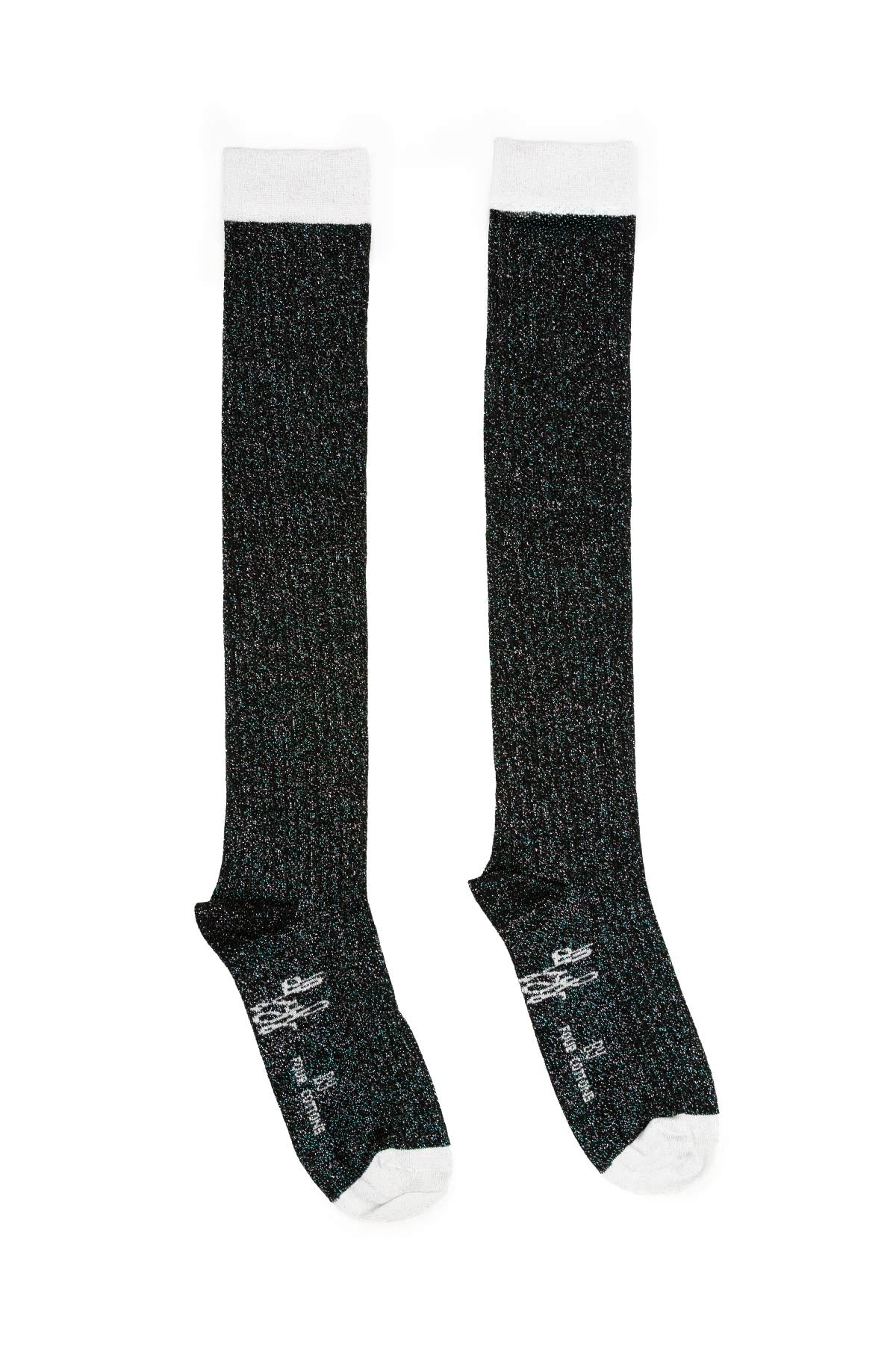 Meia de algodão de cano alto bicolor. Design com biqueira e faixa da mesma cor e glitter.