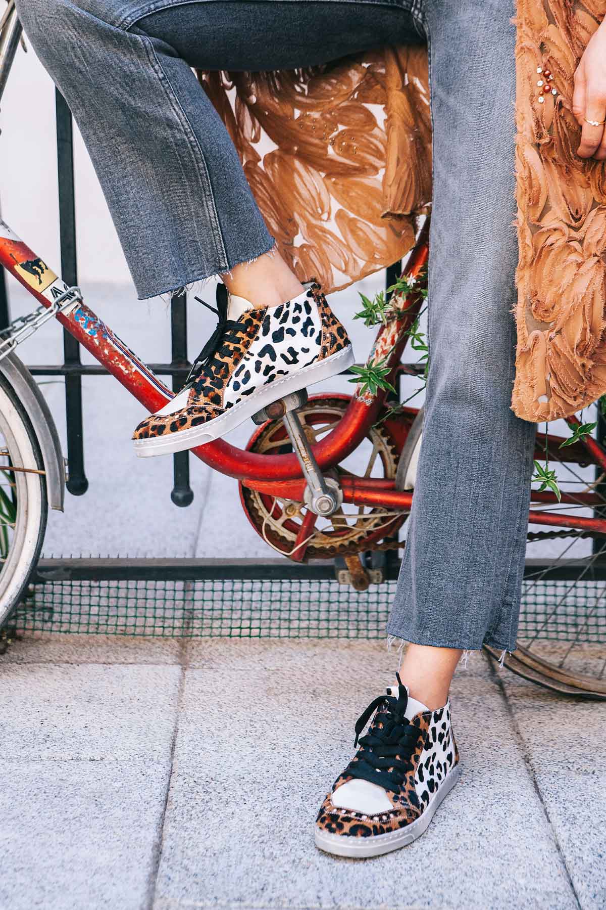 A Running Sofía é fabricada à mão e apresenta no seu exterior 5 peças diferentes. Vem com uma palmilha removível ainda mais acolchoada para uma experiência super confortável. Sofía é um modelo de acabamentos premium com mistura de dois tipos diferentes de animal print, com base branca e castanha. As costuras do ténis desportivo são cuidadosamente trabalhadas.