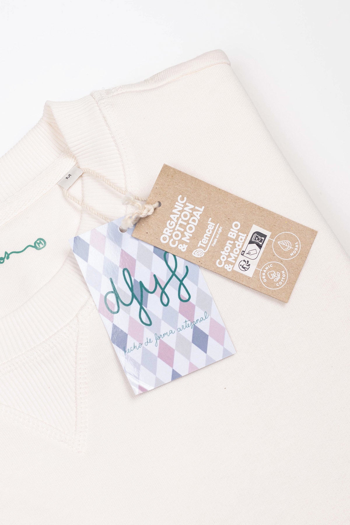 A sweatshirt dfyf na cor osso chega para proporcionar conforto e estilo aos teus outfits. Um design em algodão 100% orgânico, que apresenta triplo logo nas costas, em serigrafia digital de alta qualidade, produzido em Espanha. A manga tem o logo dfyf bordado em verde água.