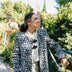 Gabardina desenhada e confeccionada 100% nos nossos ateliers em Espanha. É feita em tecido de algodão de alto peso, semi impermeável, com estampado animal print em tons verdes e forro no mesmo verde. A característica mais especial são as suas mangas destacáveis: retiram-se através de botões ocultos e transformam a peça em colete. No peito, tem molas e botões decorativos XL forrados. Além disso, esta gabardina incorpora uma ombreira de altura especial, feita à medida para dfyf, acabada com forro no mesmo tecido principal.