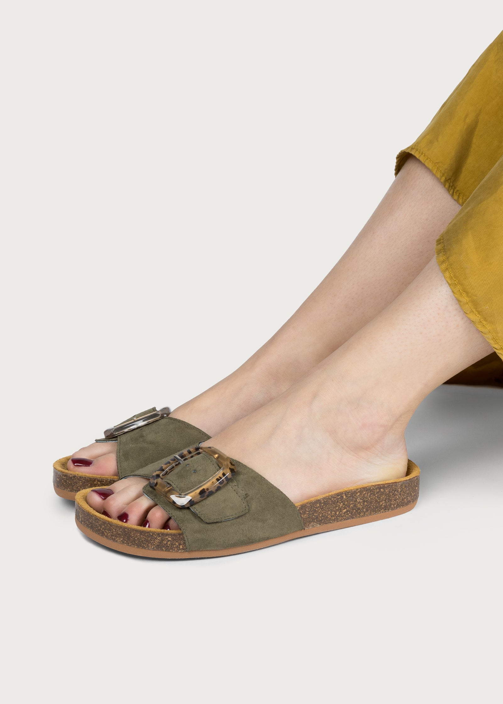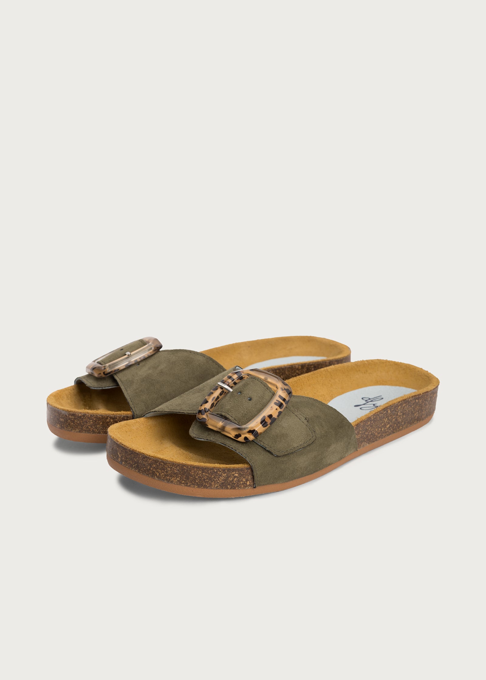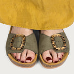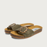 Salvia Caza es una sandalia plana que combina naturalidad y carácter a través de un diseño artesanal lleno de contraste y textura. Diseñada y producida de forma artesanal 100% en España, está elaborada con materias primas de alta calidad cuidadosamente seleccionadas por su resistencia, confort y riqueza visual.